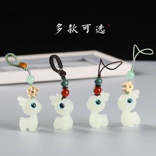 夜光一鹿平安钥匙扣创意可爱小鹿挂件精致小众迷你吊坠手机链萌女
