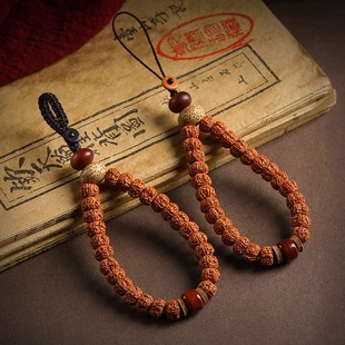 普陀山黄杨木莲花钥匙扣手工雕刻古风挂件菩提根文玩手机链挂绳女