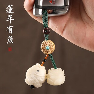 菩提多宝鱼汽车钥匙扣雕刻莲花吊坠挂饰古风小众手机链情侣礼物