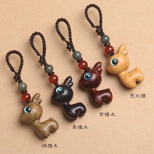 正品檀木小鹿钥匙扣精致情侣手机链礼物一鹿平安吊坠厂家批发挂件