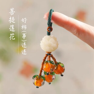 好柿莲年菩提莲花中国风钥匙扣白玉菩提好柿连连古风手机链车挂