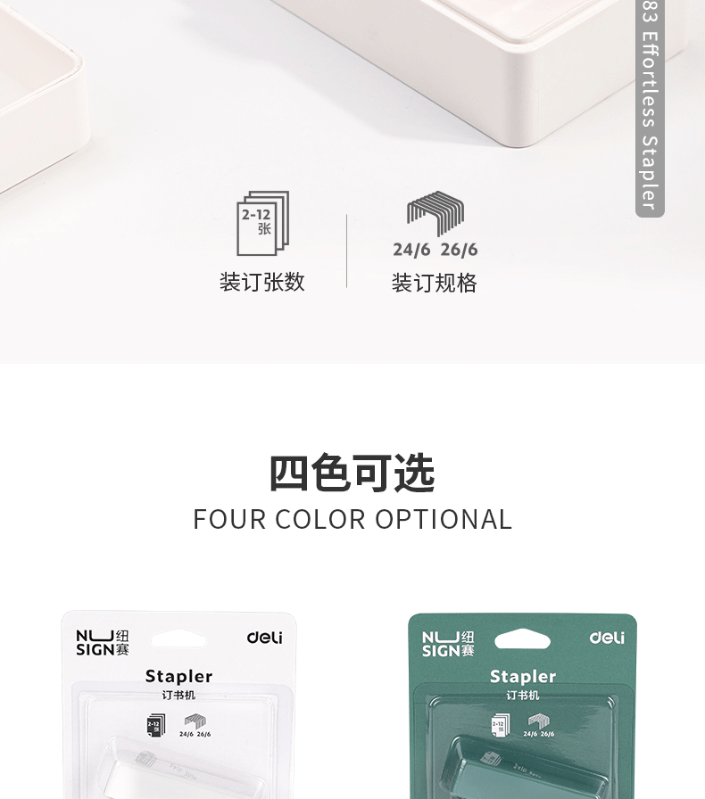 델리 미니 스테이플러 노동 절약 NS083 스테이플러 휴대용 학생 사무실 이중 목적 스테이플러 세트 소형