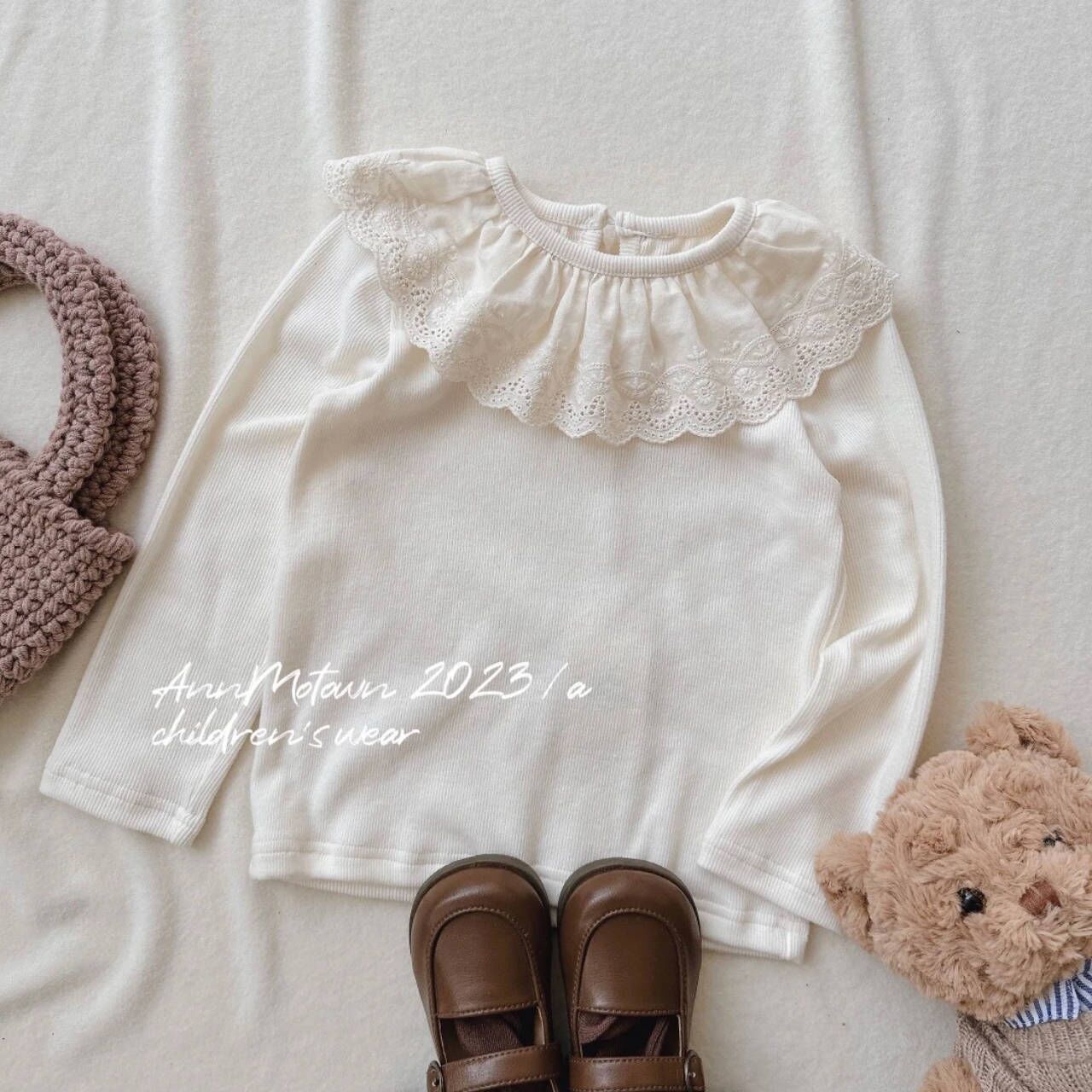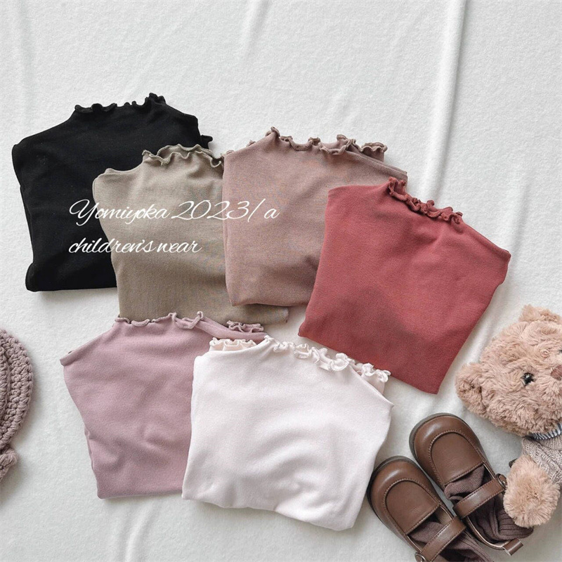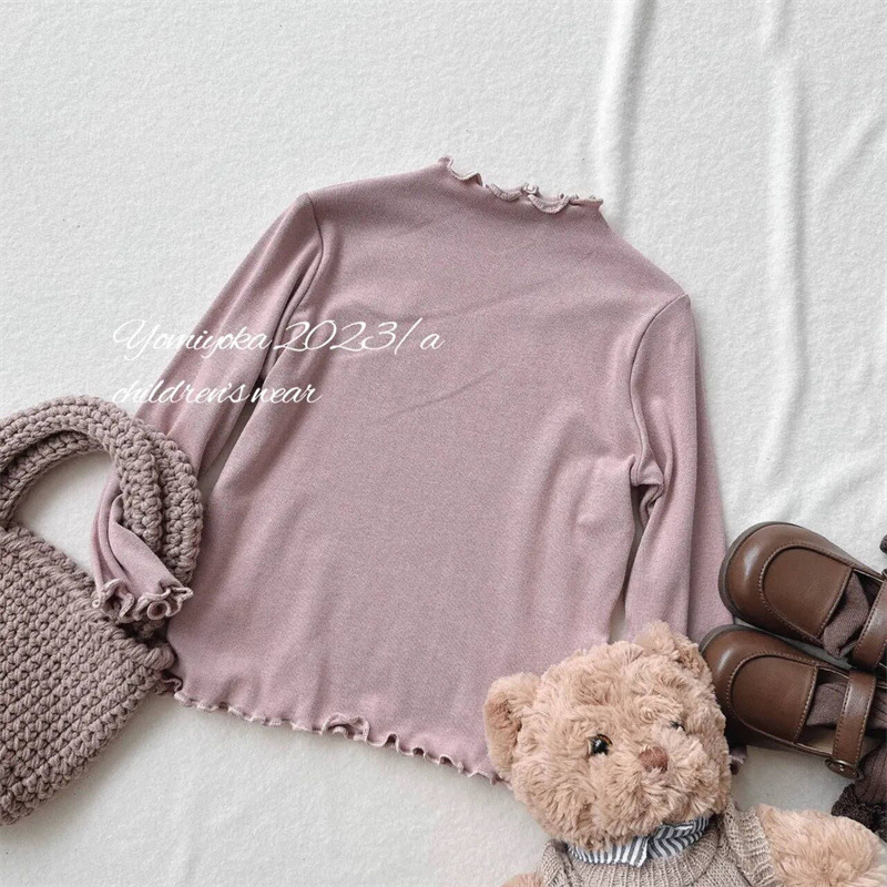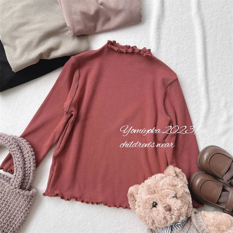 Tong Xingyuan 봄과 가을 새로운 한국 스타일 어린이 베이스 셔츠 여아 귀 가장자리 슬림핏 탄성 베이스 탑 트렌디 티셔츠스토어 가기