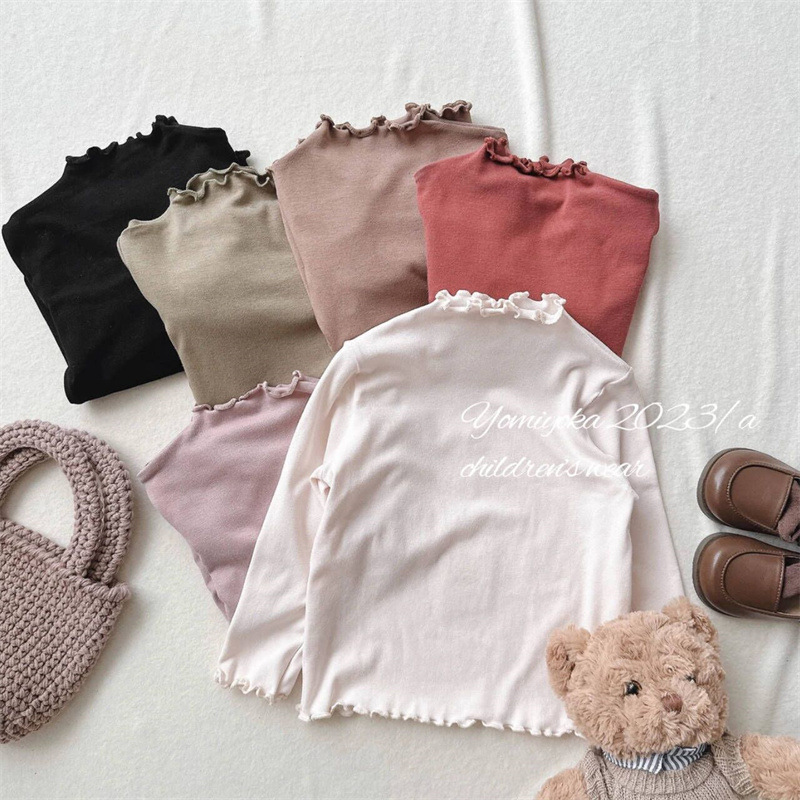 Tong Xingyuan 봄과 가을 새로운 한국 스타일 어린이 베이스 셔츠 여아 귀 가장자리 슬림핏 탄성 베이스 탑 트렌디 티셔츠