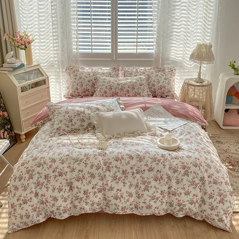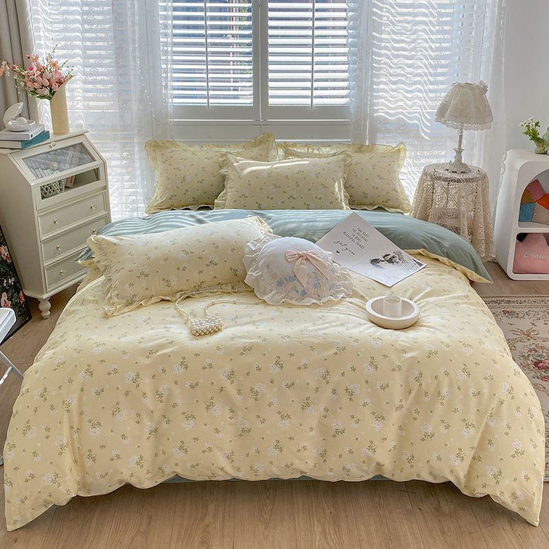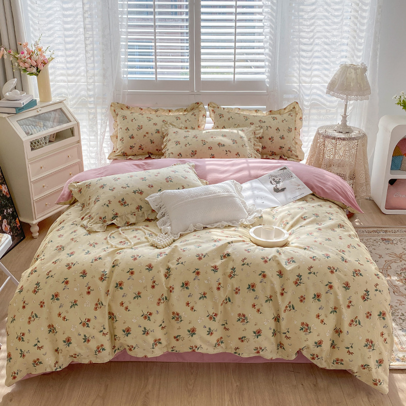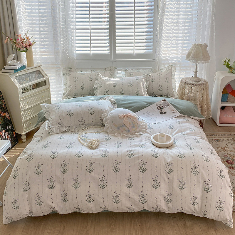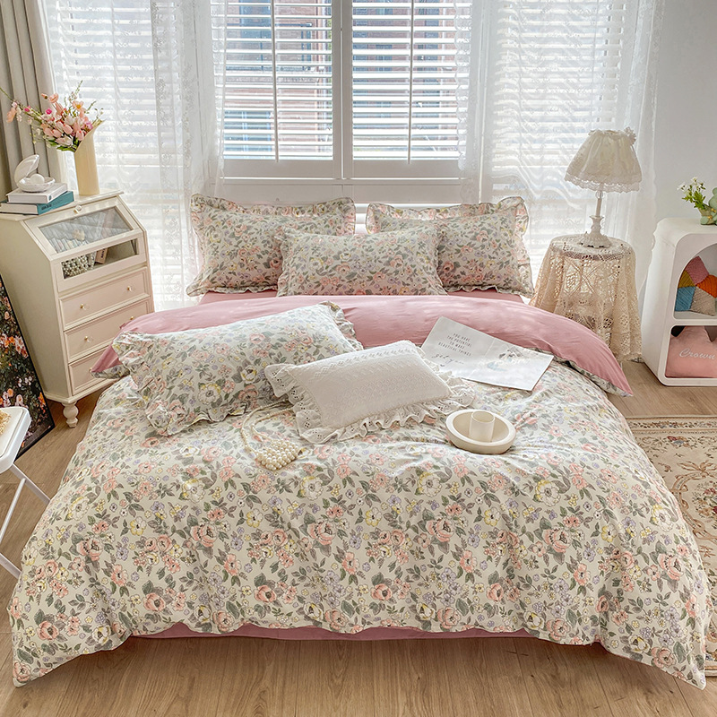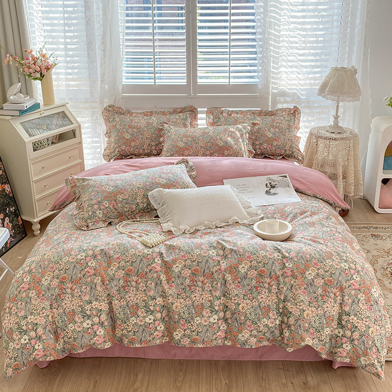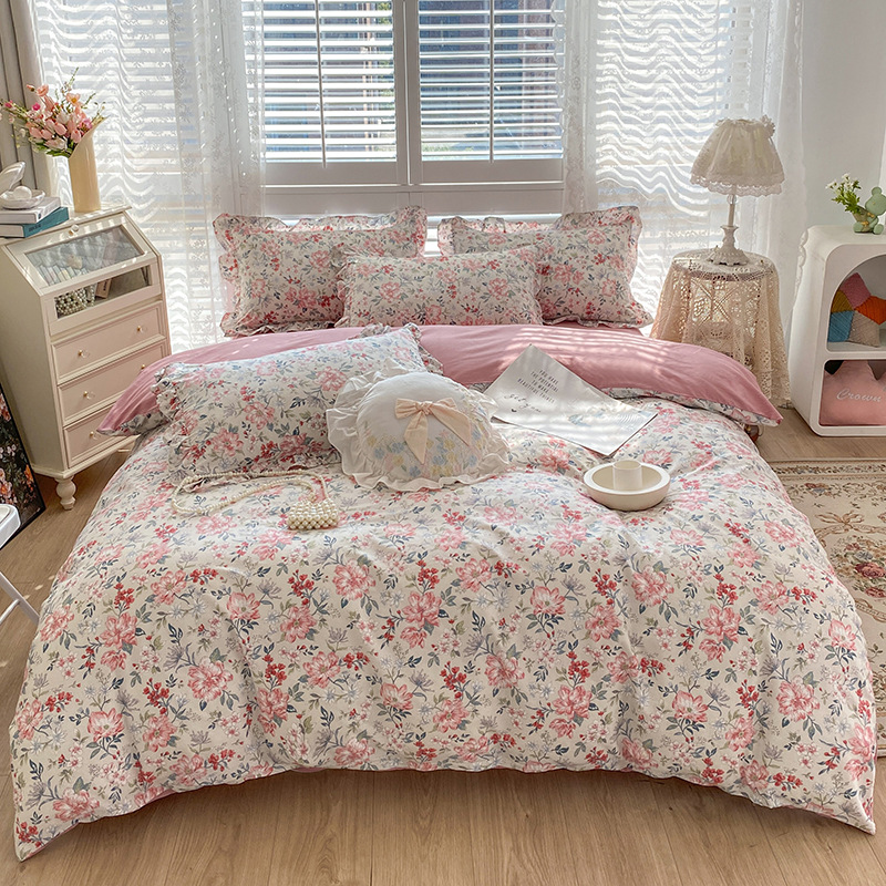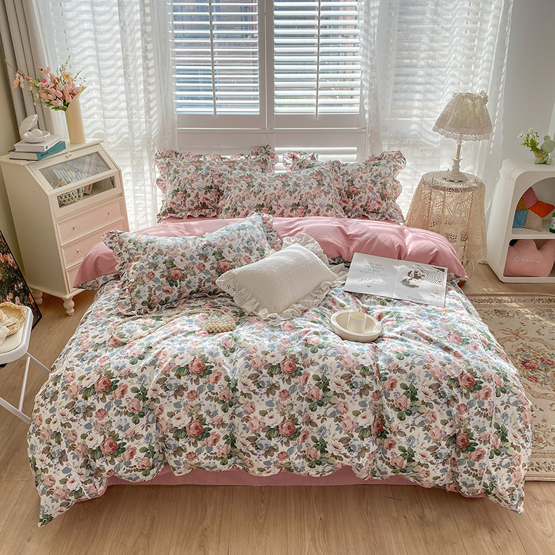 한국식 코튼 플로럴 4 종 세트 면 가정용 쓰리피스 세트 세탁 면 침대 시트 이불 커버 침구스토어 가기