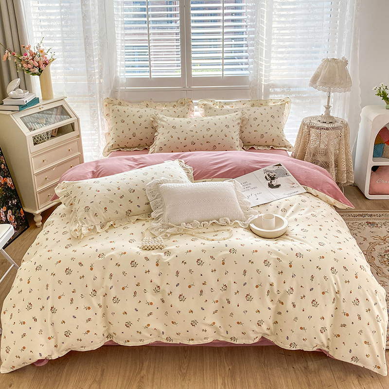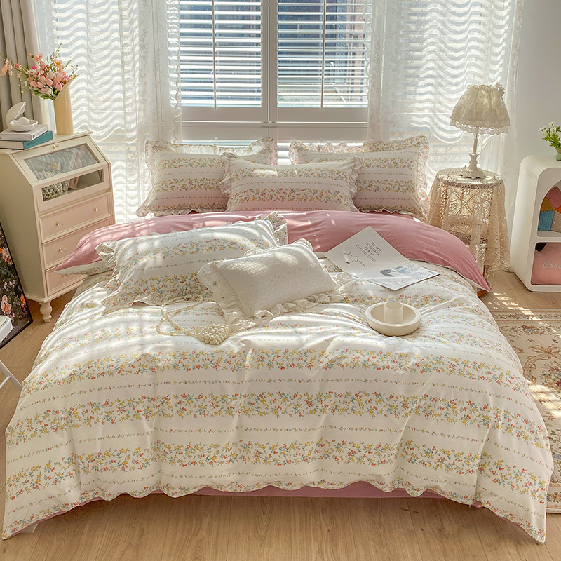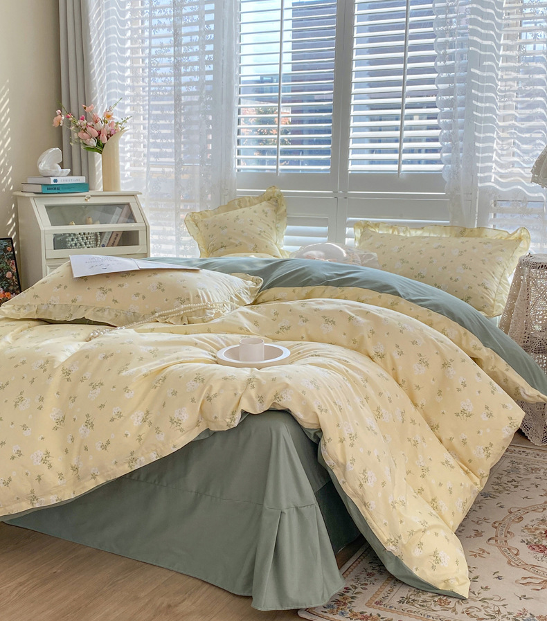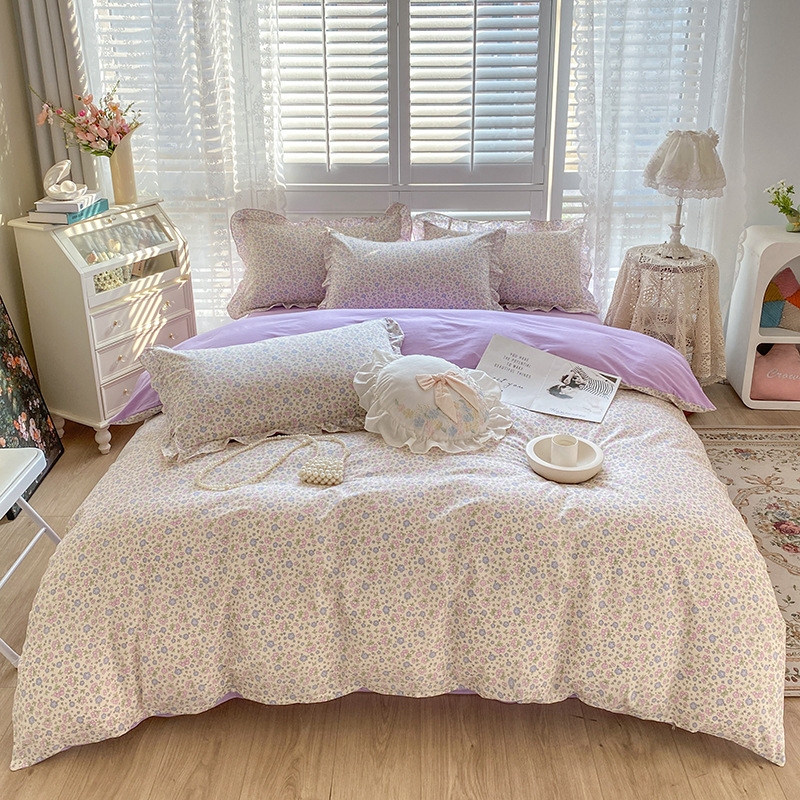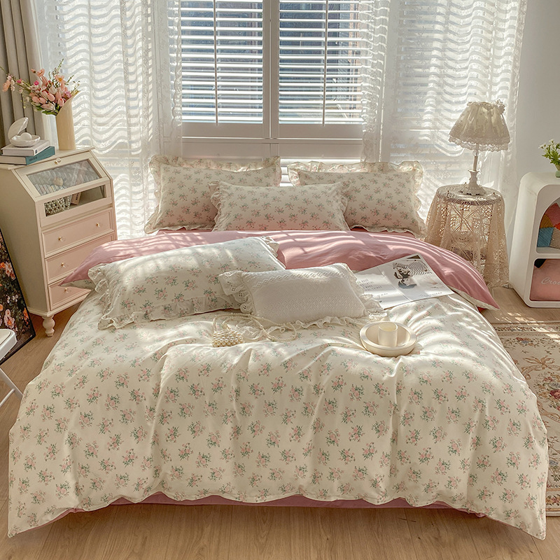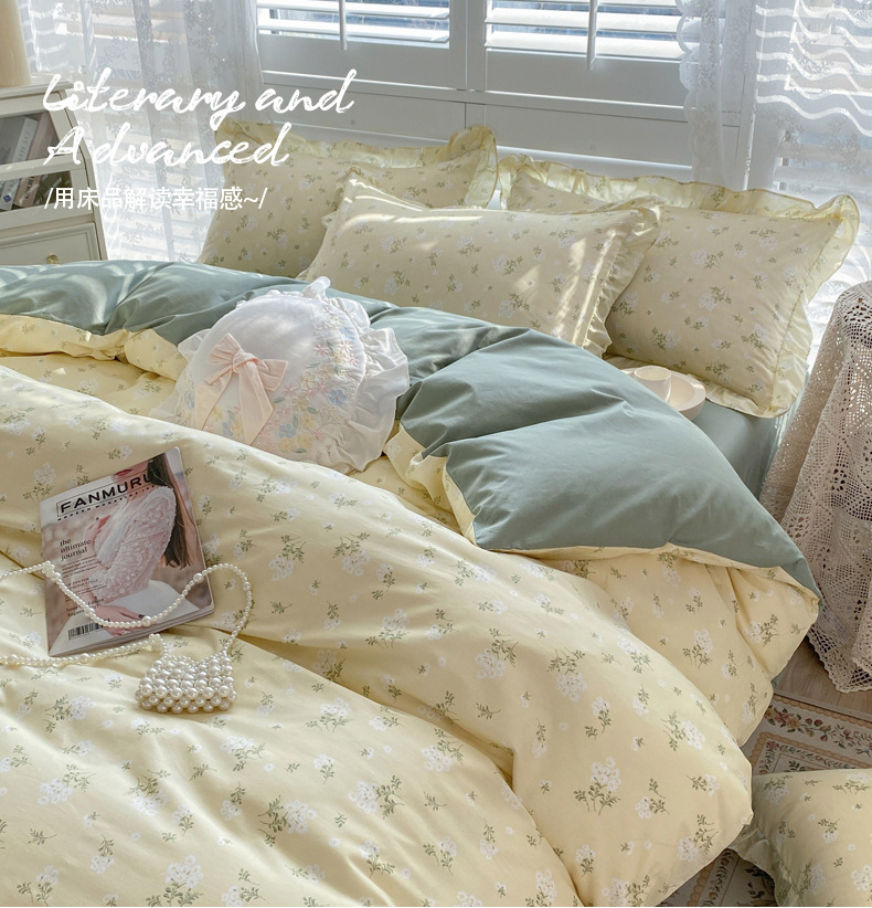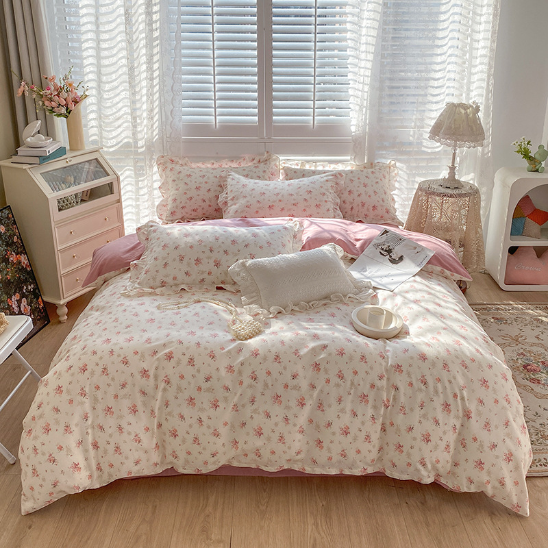 한국식 코튼 플로럴 4 종 세트 면 가정용 쓰리피스 세트 세탁 면 침대 시트 이불 커버 침구스토어 가기