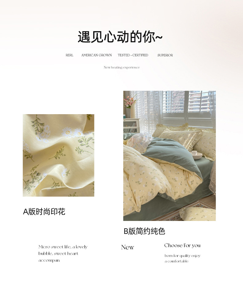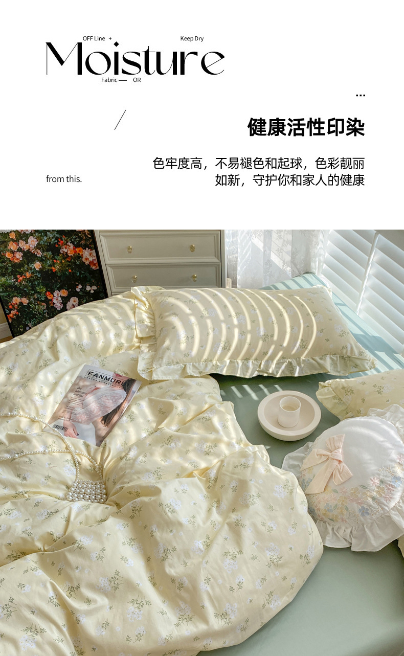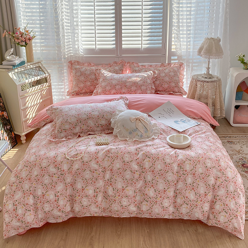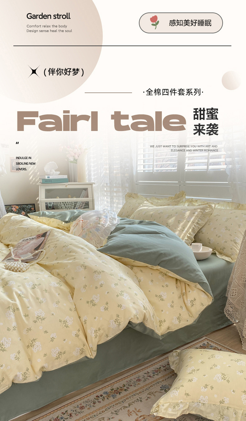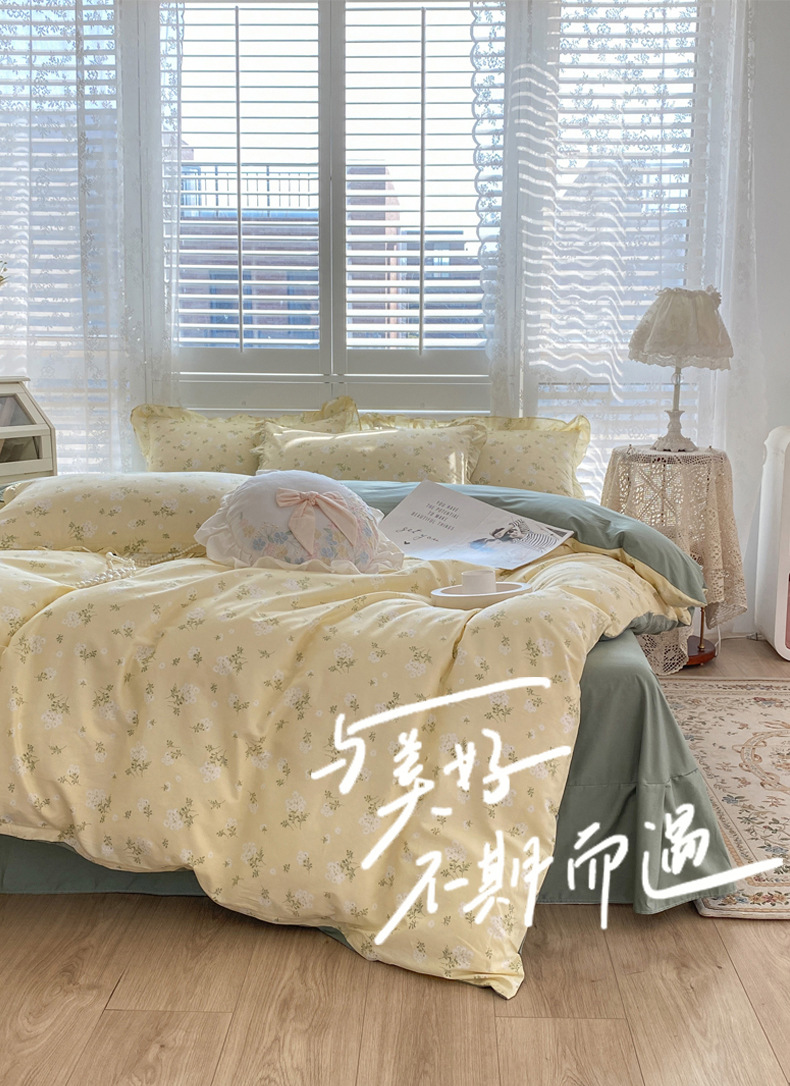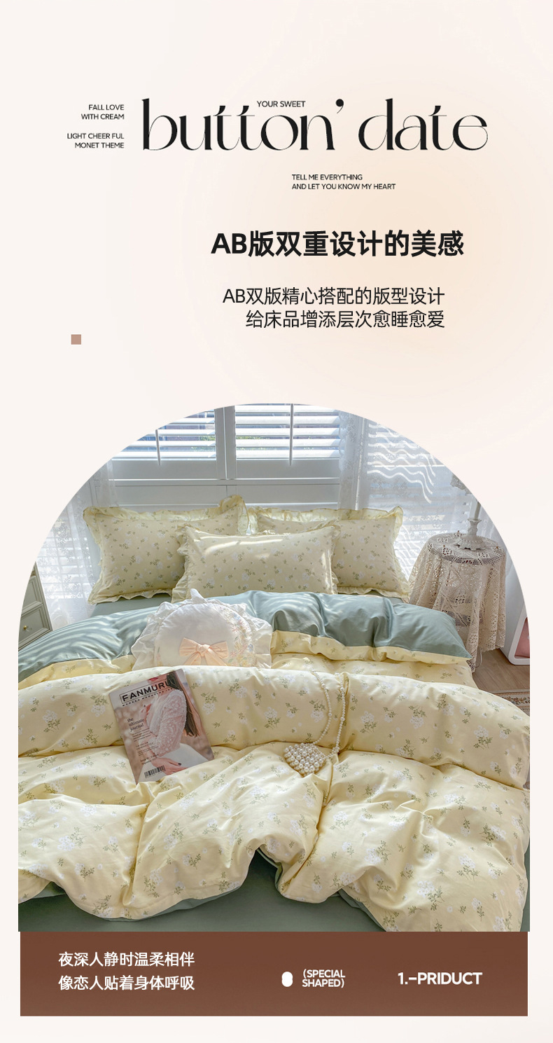 한국식 코튼 플로럴 4 종 세트 면 가정용 쓰리피스 세트 세탁 면 침대 시트 이불 커버 침구스토어 가기