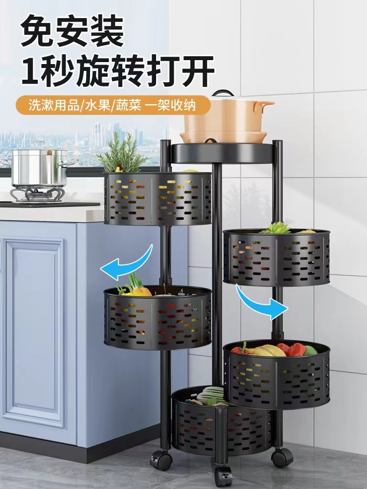주방 야채 보관 랙 다층 바닥 회전 야채 바구니 보관 랙 다기능 간단한 보관 랙스토어 가기