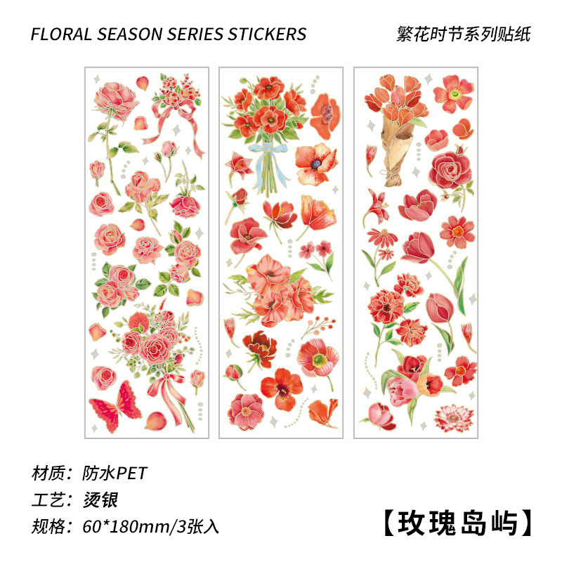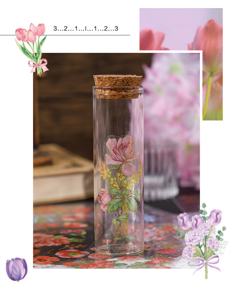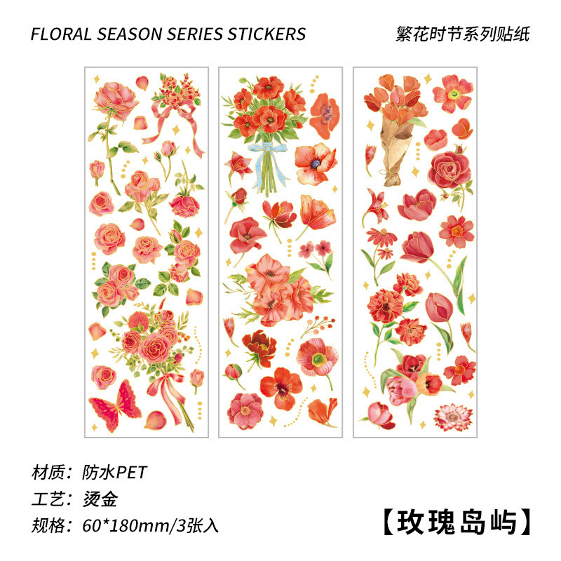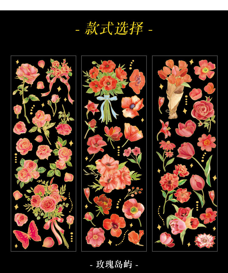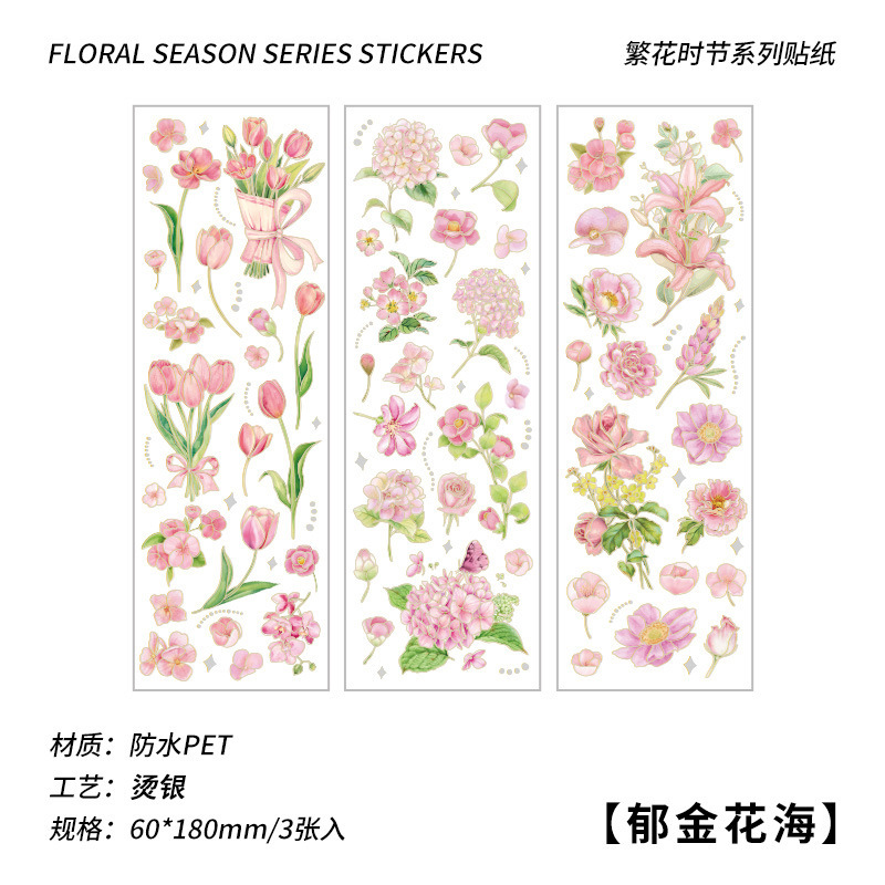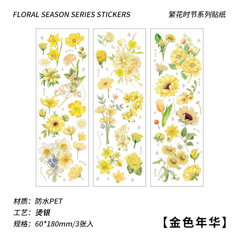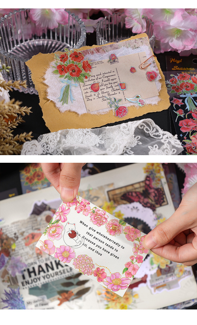 꽃 시즌 시리즈 금 실버 스티커 가방 높은 색상 가치 복고풍 식물 꽃 손 계정 장식 재료 스티커스토어 가기
