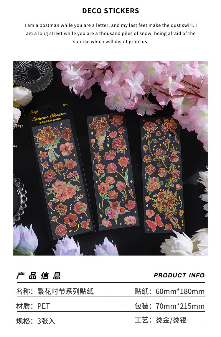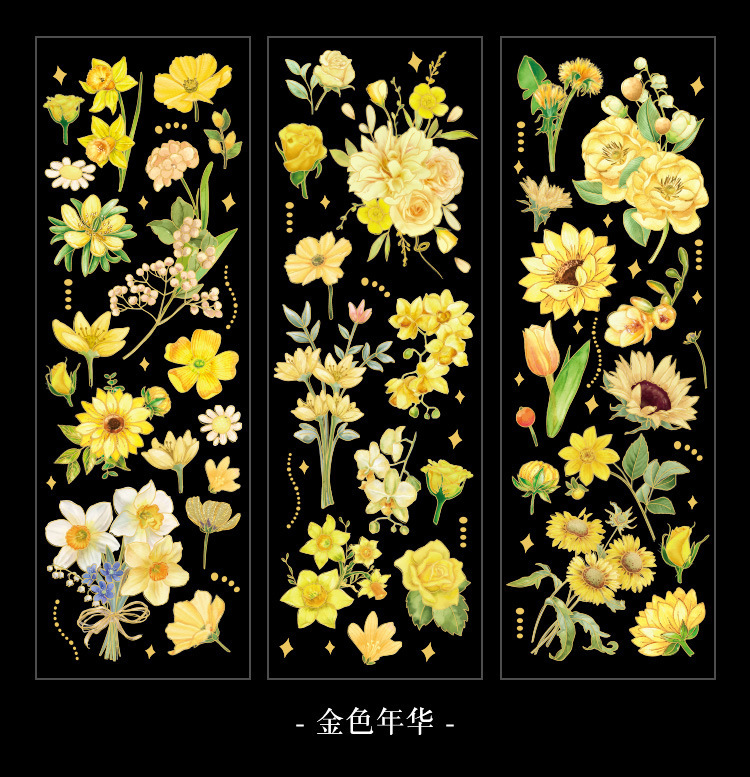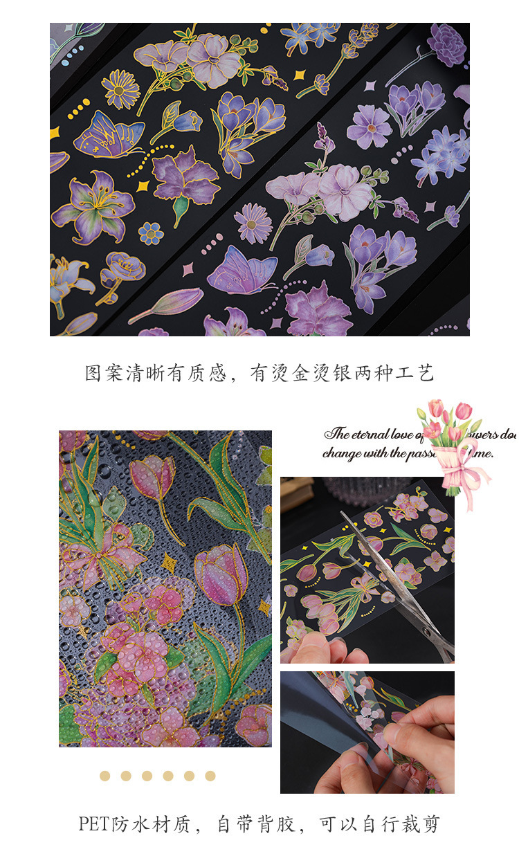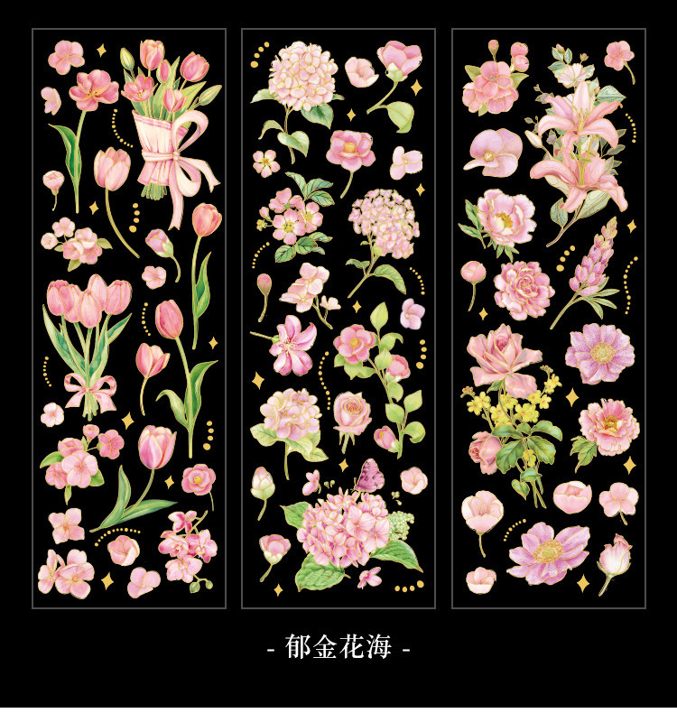 꽃 시즌 시리즈 금 실버 스티커 가방 높은 색상 가치 복고풍 식물 꽃 손 계정 장식 재료 스티커