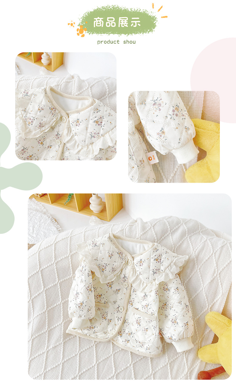 어린이 기모 코트 2023 가을과 겨울 새 어린이 작은 면 패딩 옷 소녀 꽃 기모 따뜻한 코트 도매스토어 가기