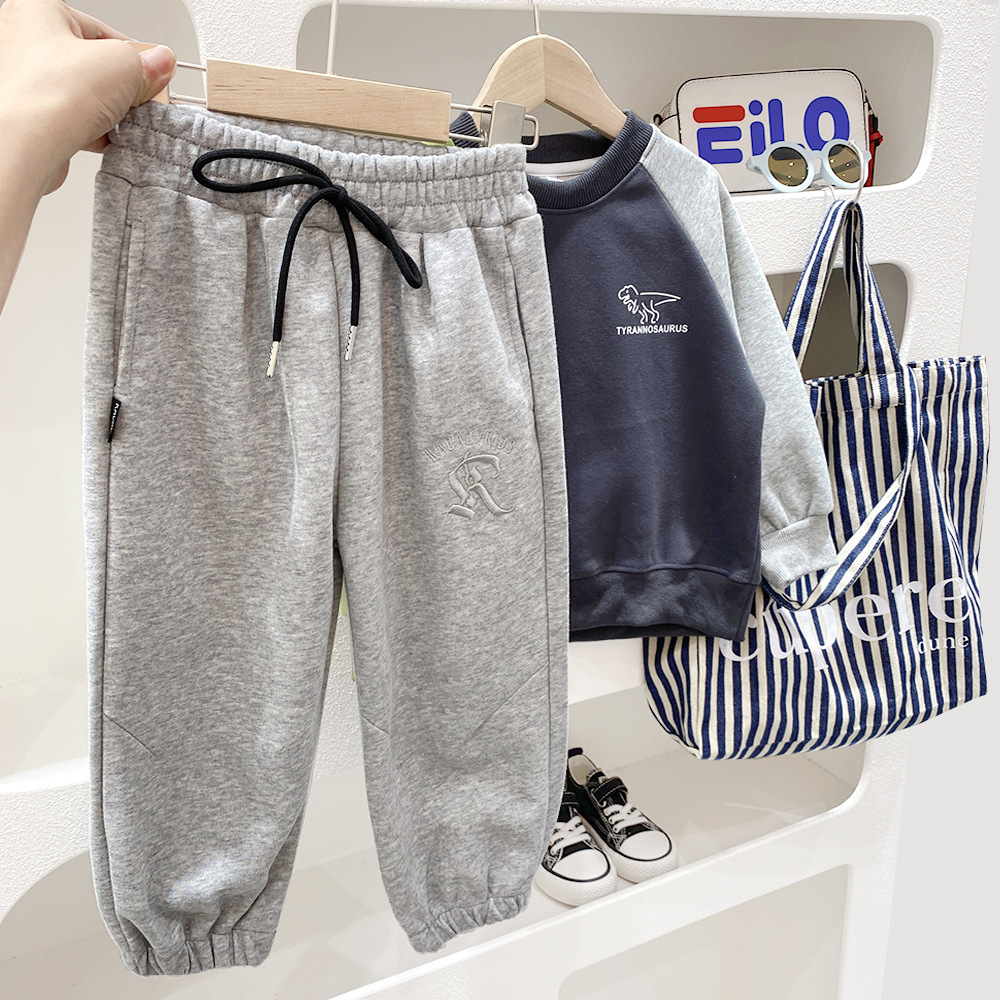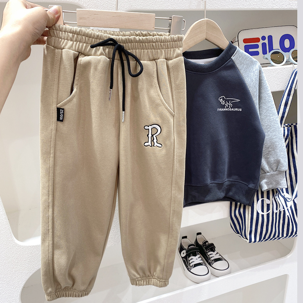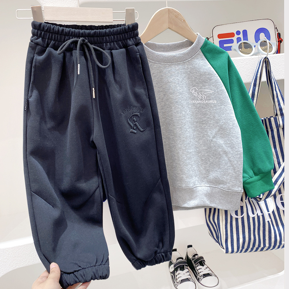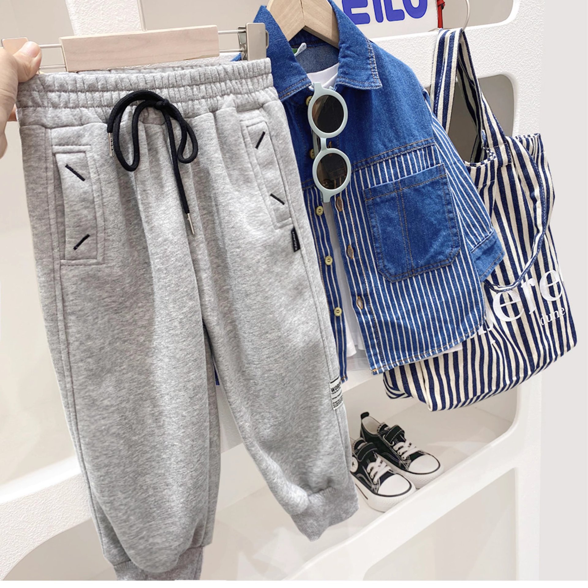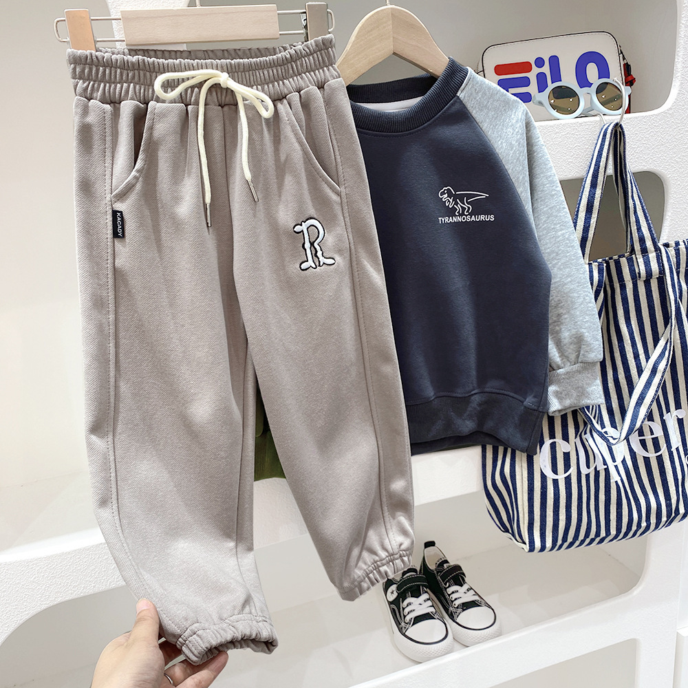 2023 봄과 가을 새로운 한국 스타일 아동복 남성과 어린이를위한 부드러운 캐주얼 운동복 학생과 어린이를위한 스포츠 바지스토어 가기