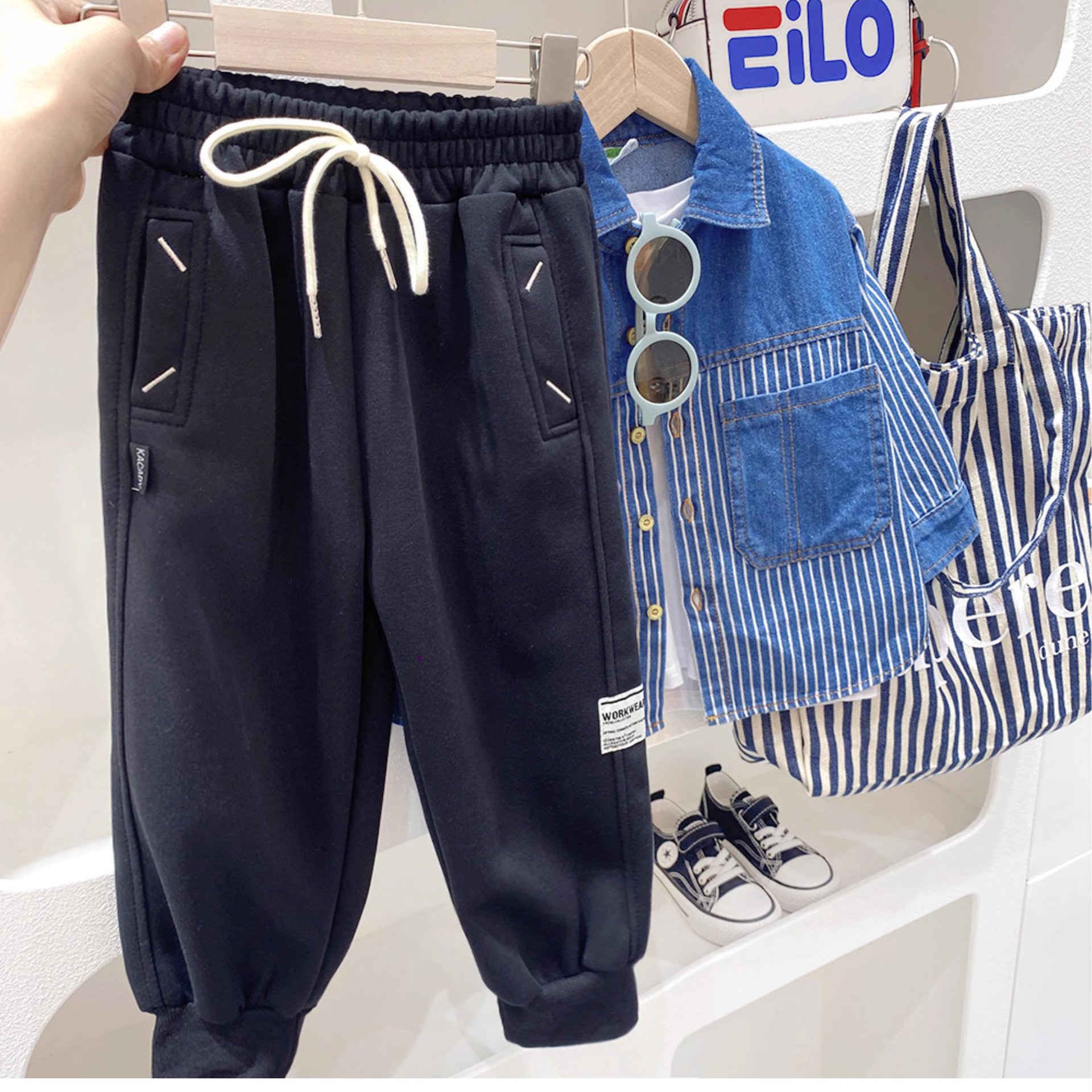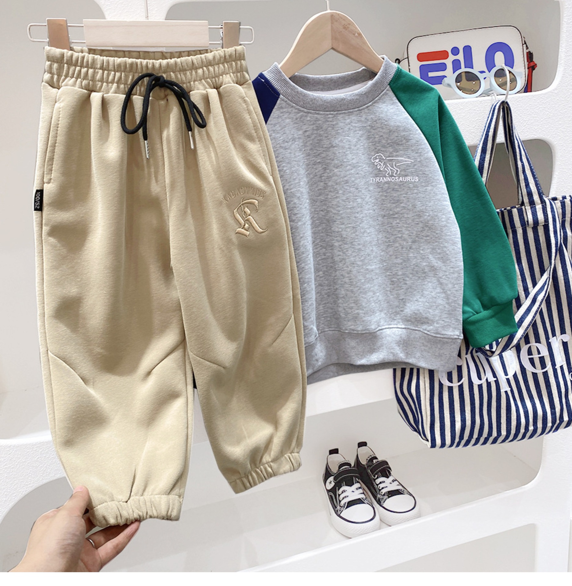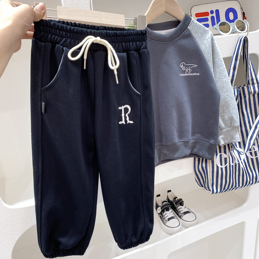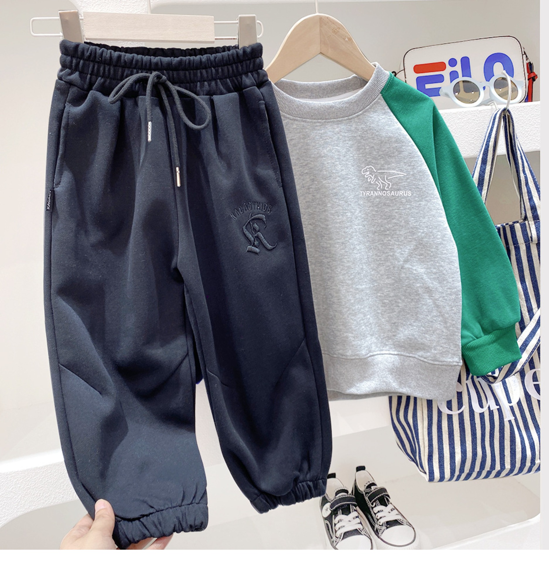 2023 봄과 가을 새로운 한국 스타일 아동복 남성과 어린이를위한 부드러운 캐주얼 운동복 학생과 어린이를위한 스포츠 바지스토어 가기