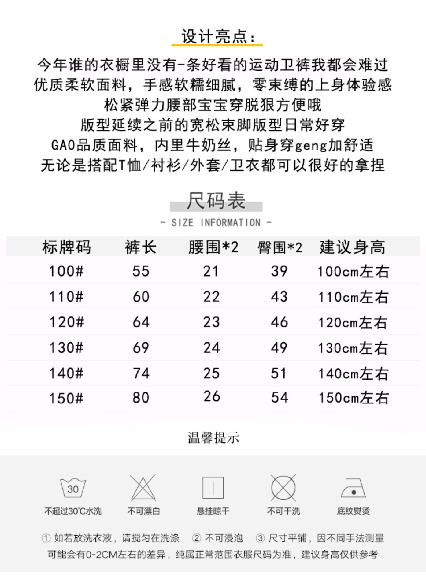 2023 봄과 가을 새로운 한국 스타일 아동복 남성과 어린이를위한 부드러운 캐주얼 운동복 학생과 어린이를위한 스포츠 바지