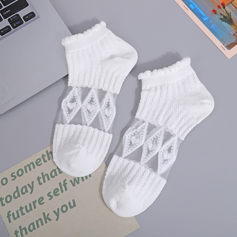여름 인터넷 연예인 레이스 양말 어린이 낮은 통기성 메쉬 유리 실크 짧은 양말 아카데미 스타일 자카드 짧은 양말