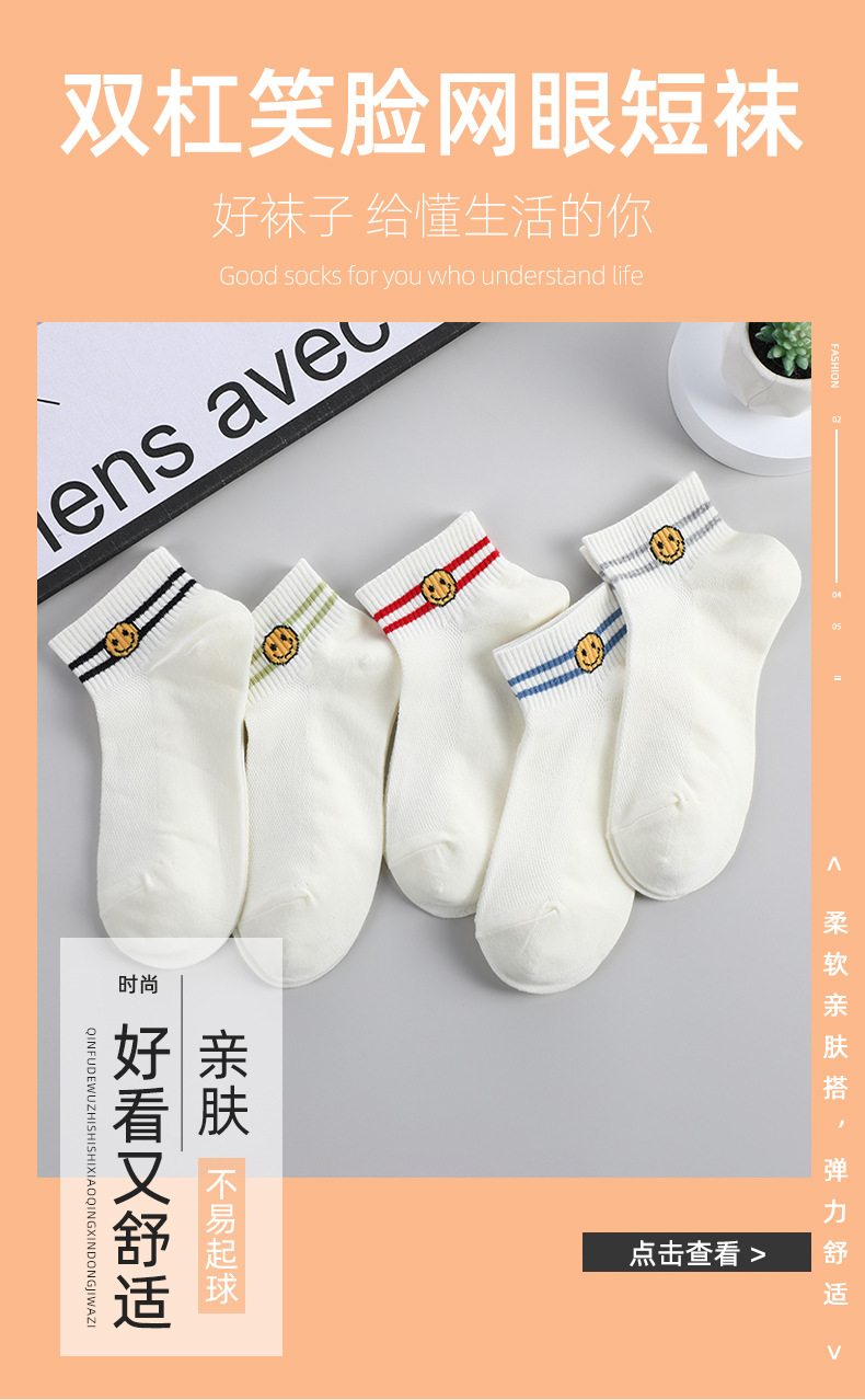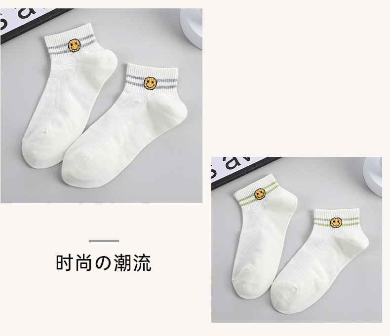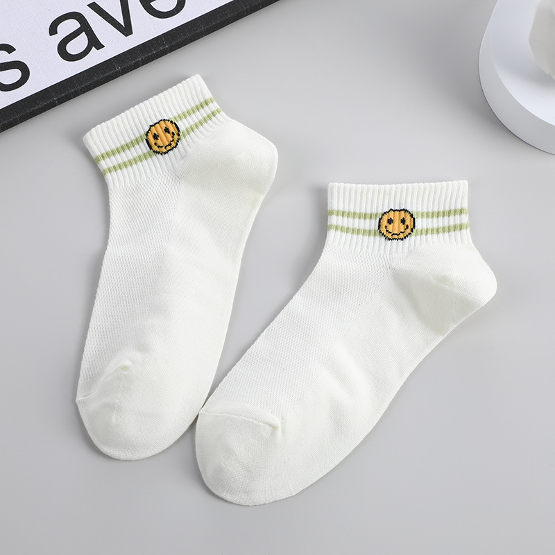 봄과 여름 스마일 자수 짧은 양말 여성용 트렌디한 투바 캐주얼 모든 경기 짧은 양말 통기성 학생 스포츠 양말