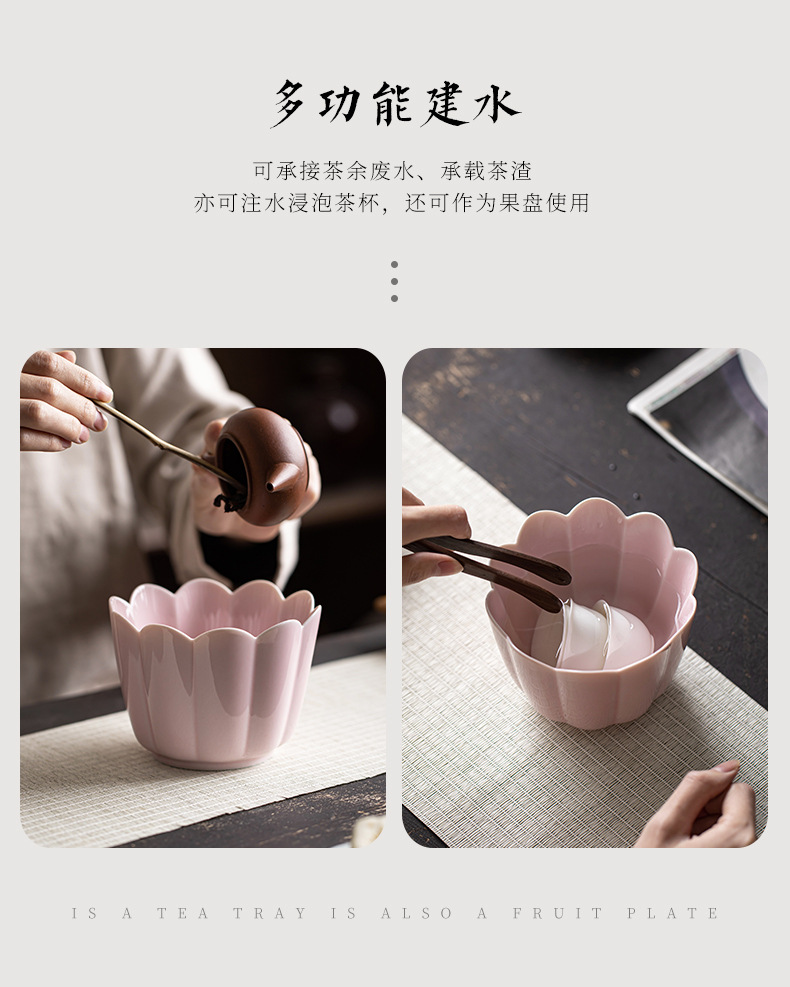 중국 스타일 복고풍 세라믹 꽃잎 Kwai Kou Jianshui 창조적 인 차 세척 차 컵 세척 물 냄비 가정용 쿵푸 차 세트 차 슬래그 버킷