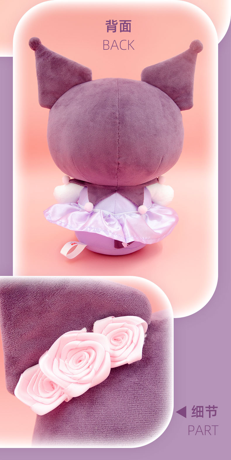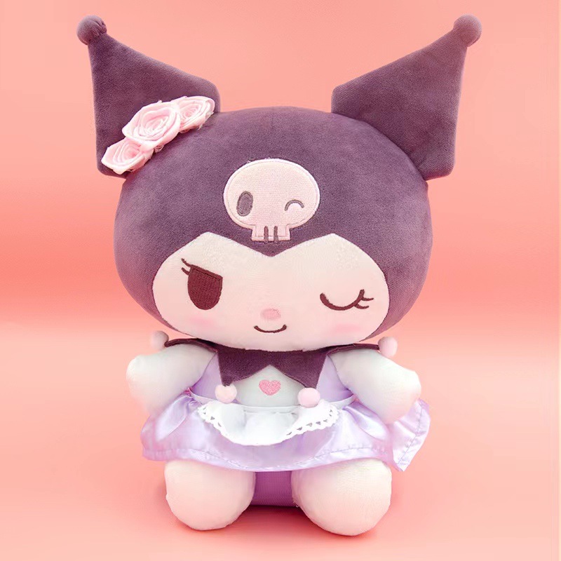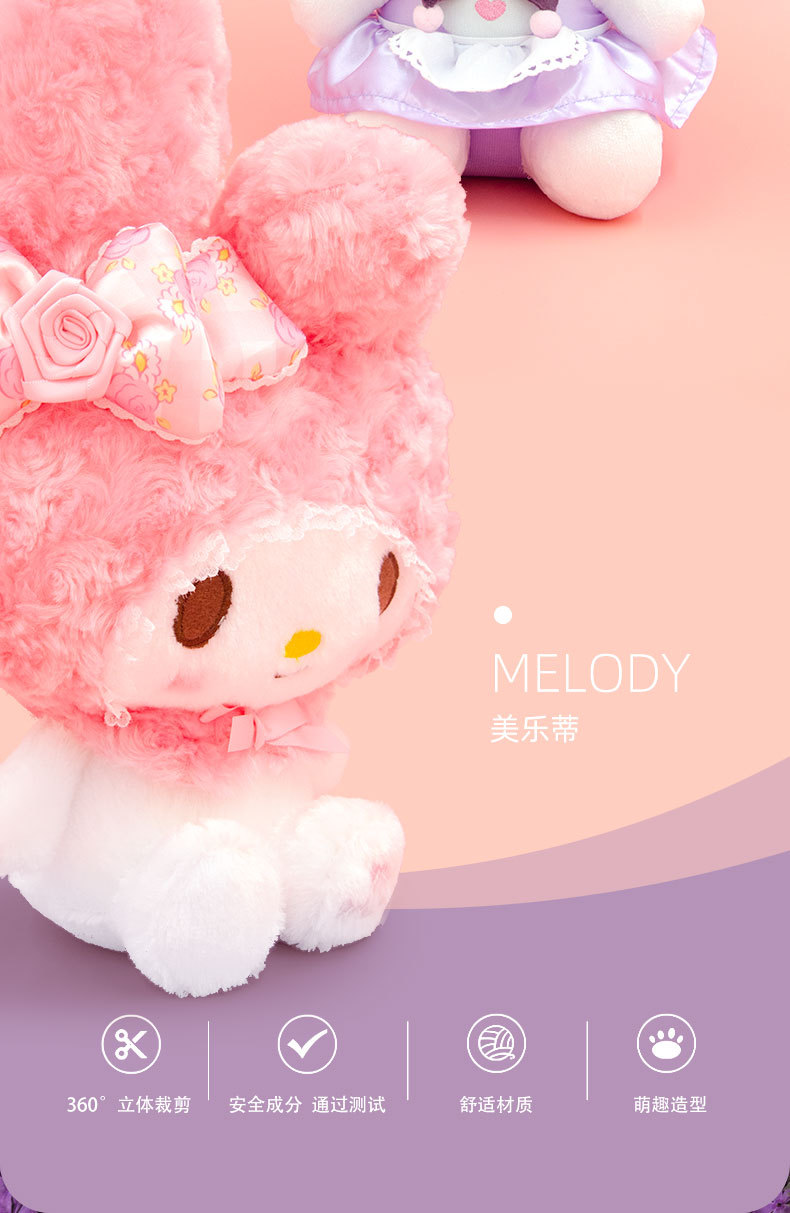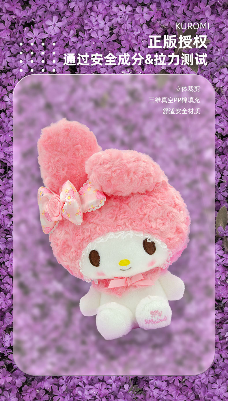 정품 산리오 인형 장미 꽃 Kulomi Meruti 봉제 장난감 열쇠 고리 매달려 펜던트 인형 여자스토어 가기