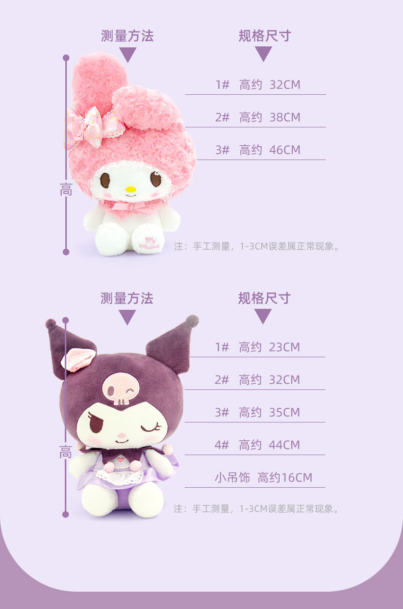 정품 산리오 인형 장미 꽃 Kulomi Meruti 봉제 장난감 열쇠 고리 매달려 펜던트 인형 여자