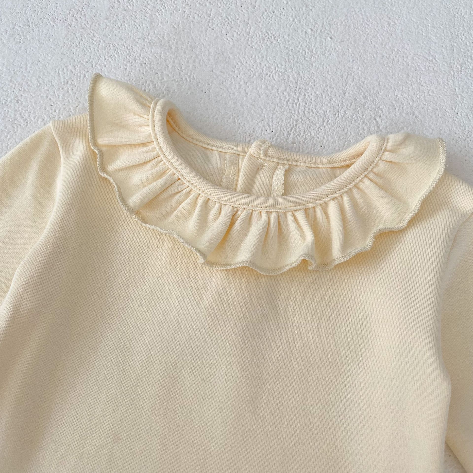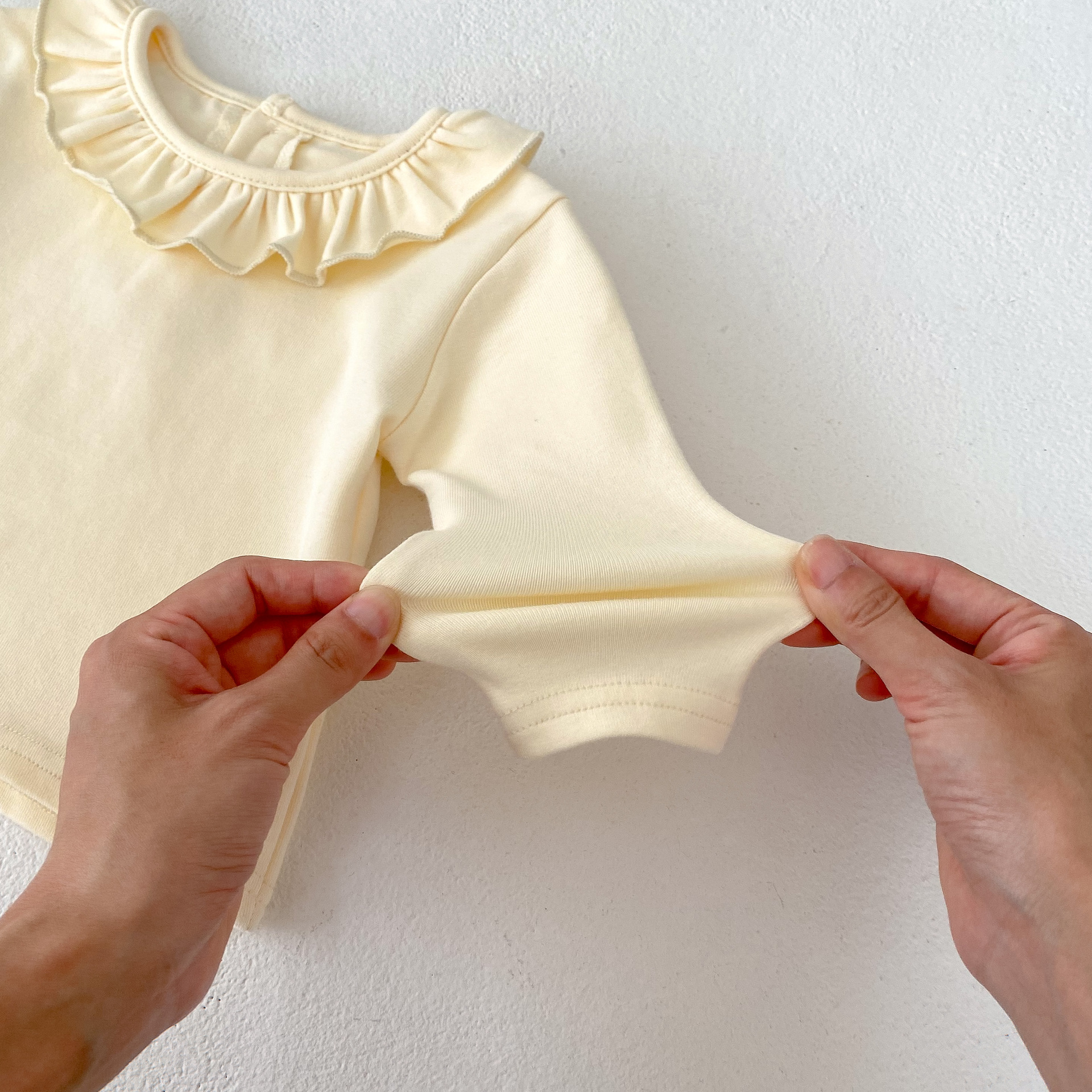 2025년 봄/가을 유아 여아용 러플 칼라 이너웨어 다용도 티셔츠 긴팔 상의