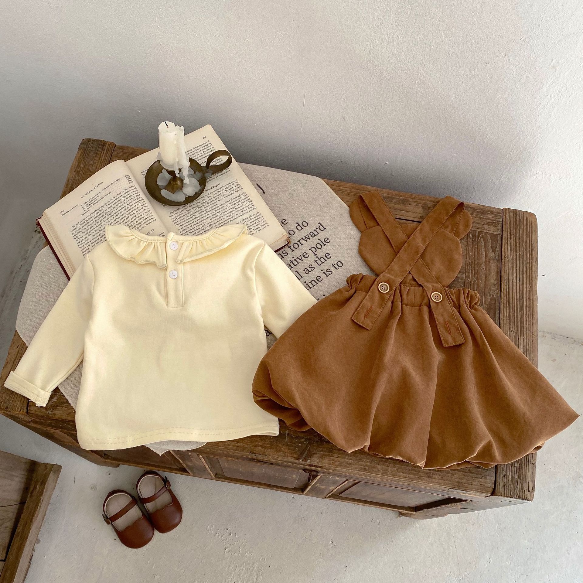2025년 봄/가을 유아 여아용 러플 칼라 이너웨어 다용도 티셔츠 긴팔 상의스토어 가기