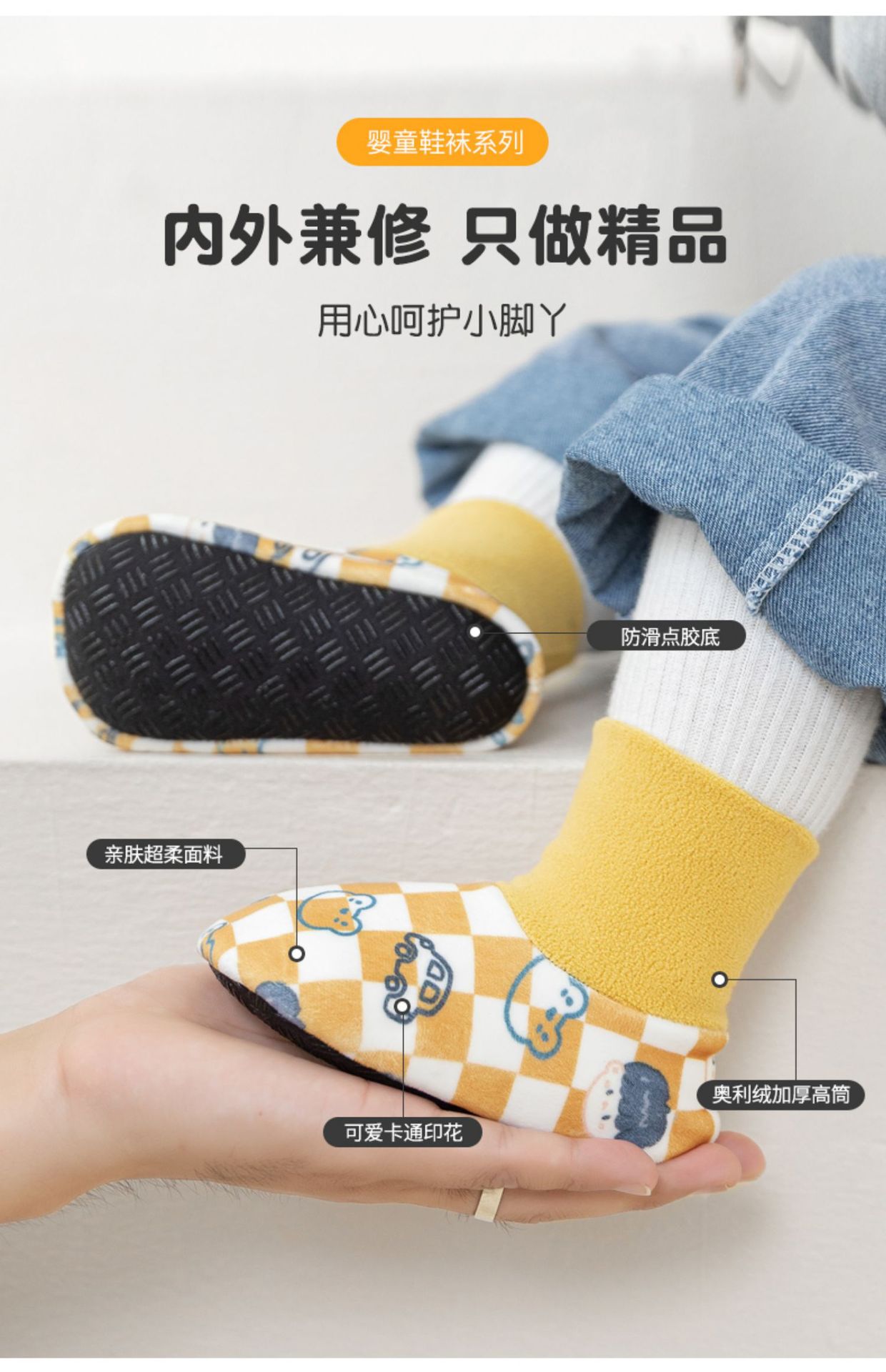 아기 바닥 양말 가을과 겨울 기모 두꺼운 따뜻한 높은 양말 아기 실내 미끄럼 방지 차가운 방지 유아 신발 양말 커버
