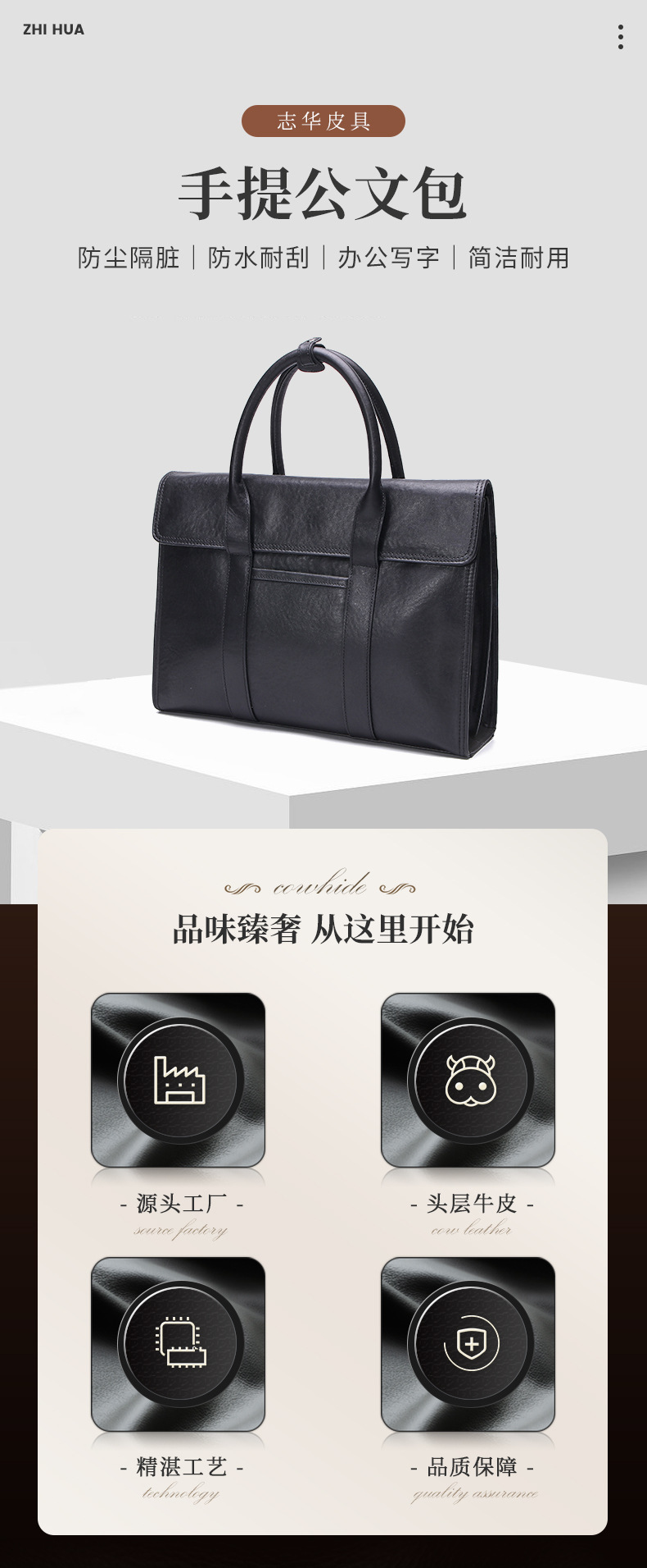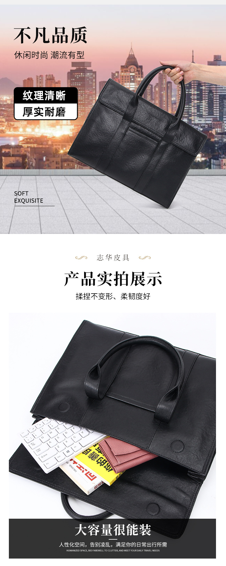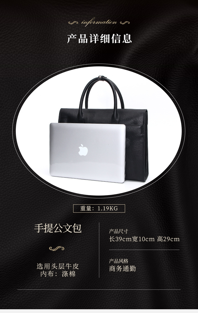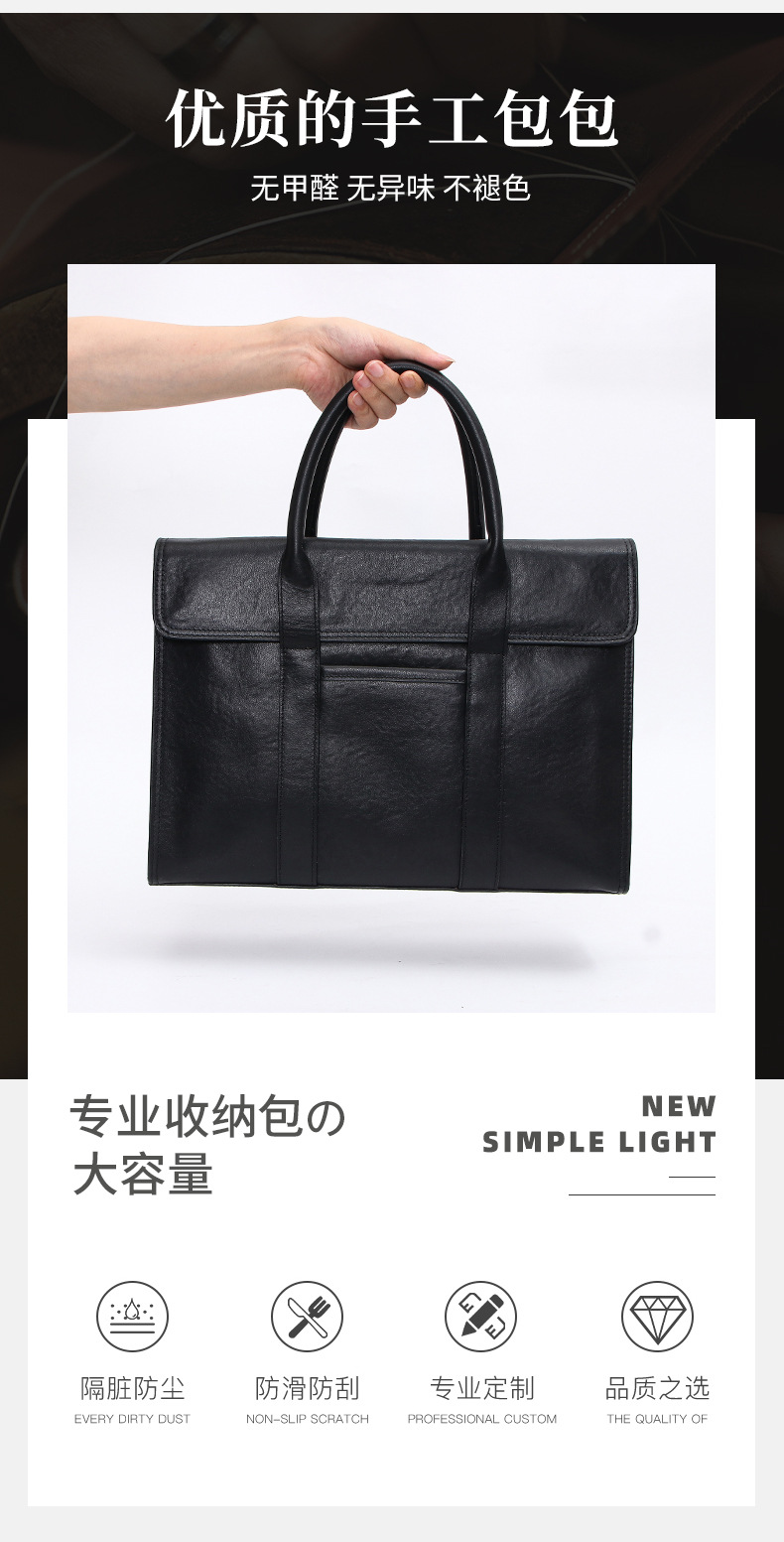 공장 직접 판매 비즈니스 정품 가죽 남성용 서류 가방 1 층 소 가죽 대용량 고급 남성용 가방 하이 엔드 블랙 9118스토어 가기
