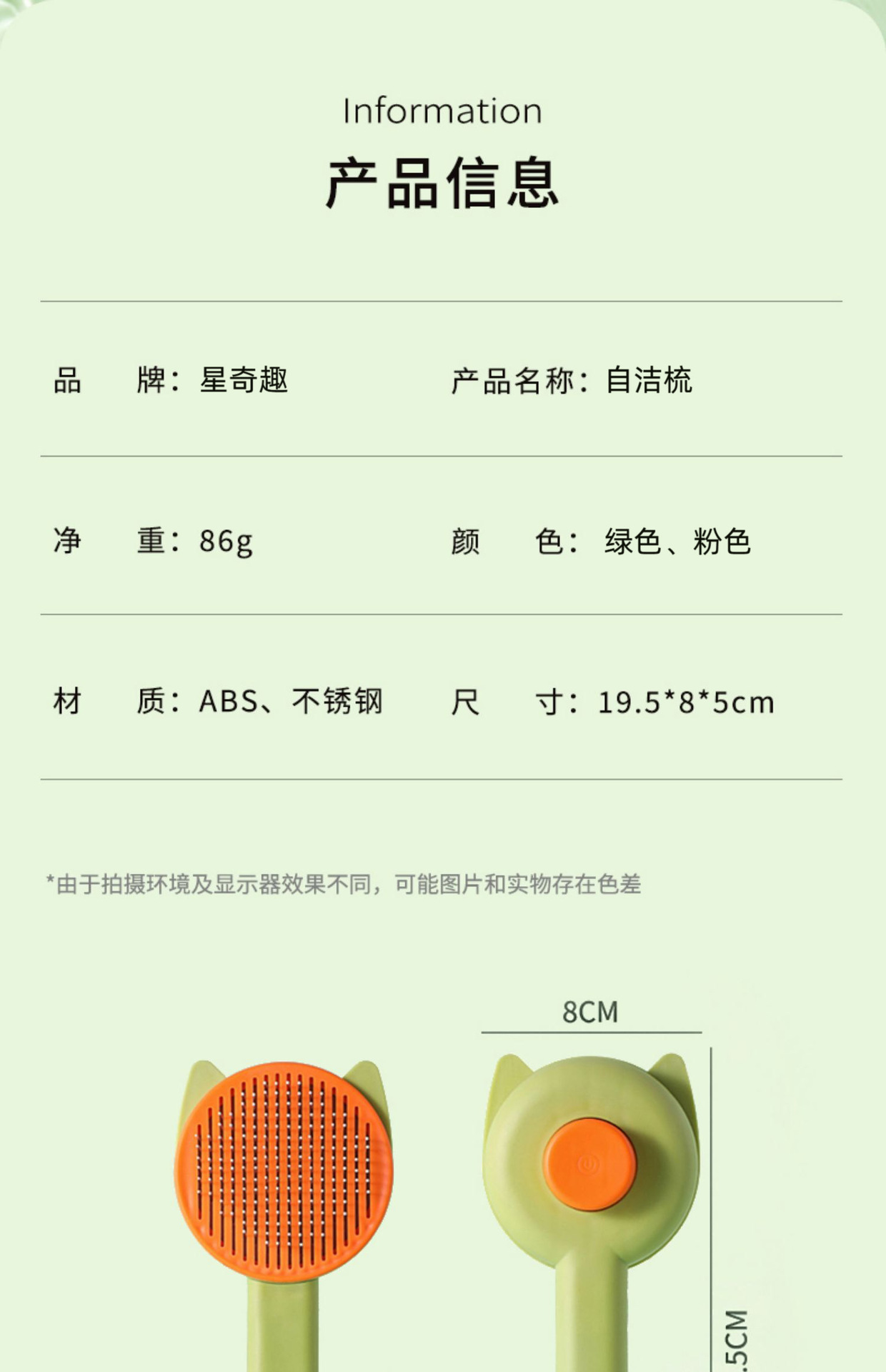 Xingqiqu 자체 청소 빗 CZJS004 고양이 귀 빗 머리 브러시 고양이 개 머리 제거 원 클릭 머리 제거 애완 동물 용품