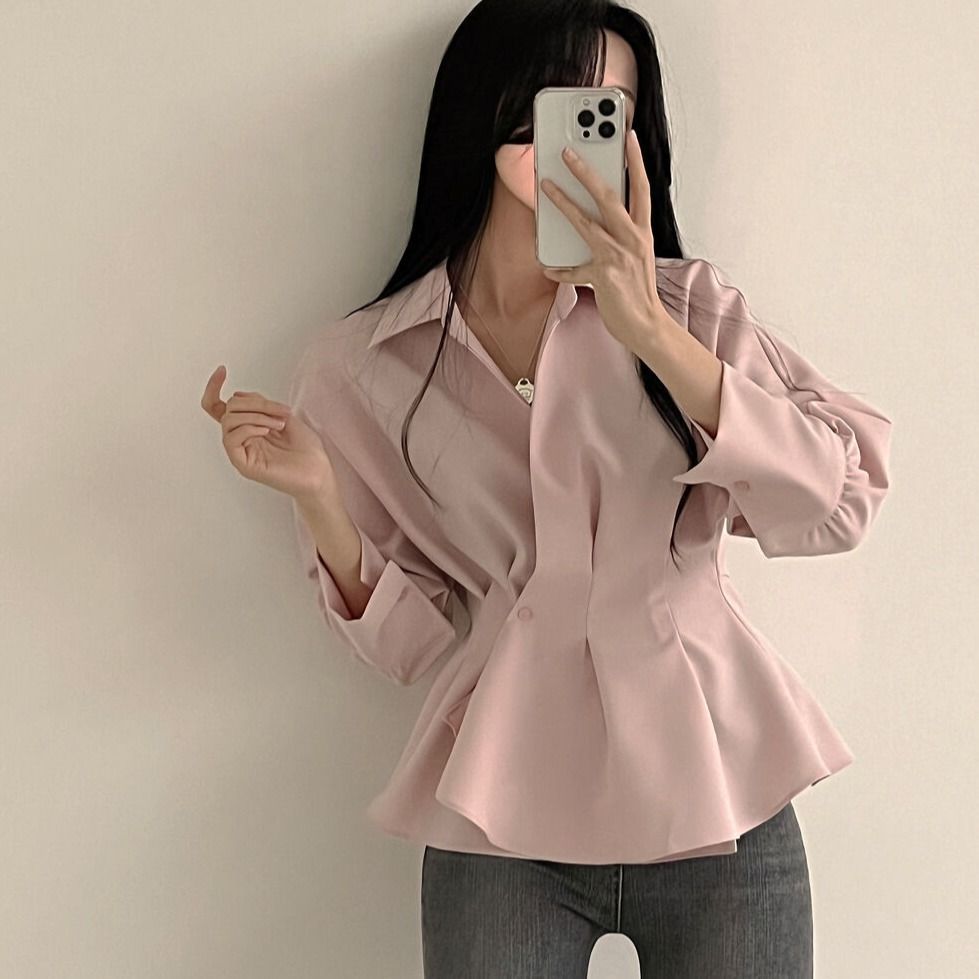 2023 봄과 가을 새로운 복고풍 꽉 허리 스커트 세련된 러플 디자인 틈새 긴 소매 시크 셔츠 탑스토어 가기