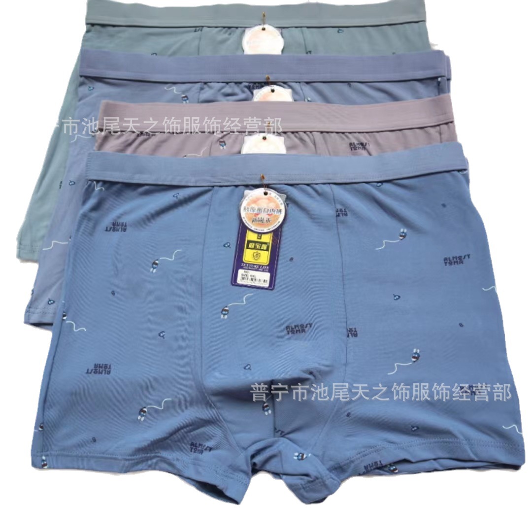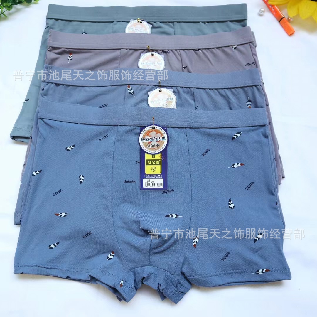 남성 속옷 75D 콜라겐 함유 플랫 코튼 팬티, 통기성 좋은 루즈핏 대형 사각 팬티, 제조업체 도매스토어 가기