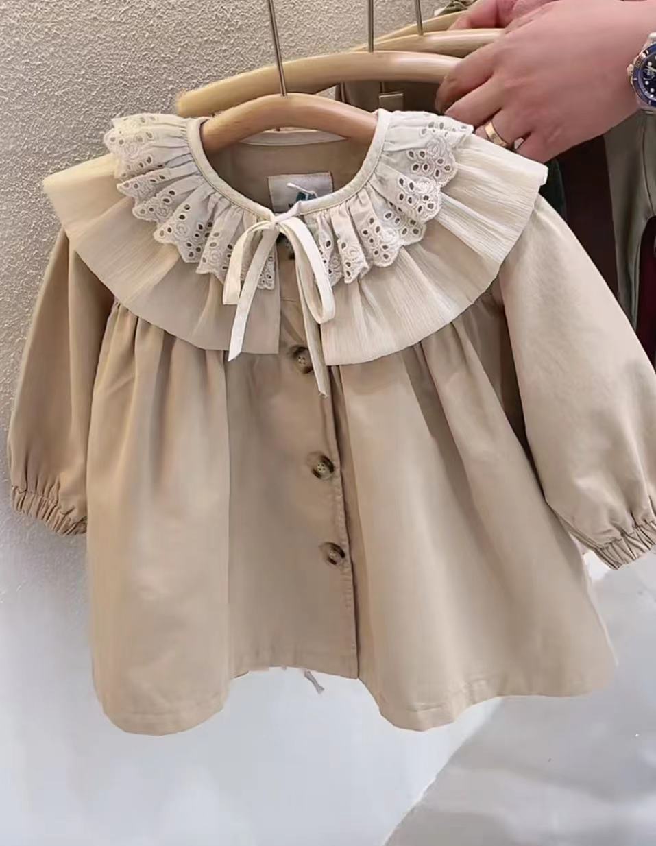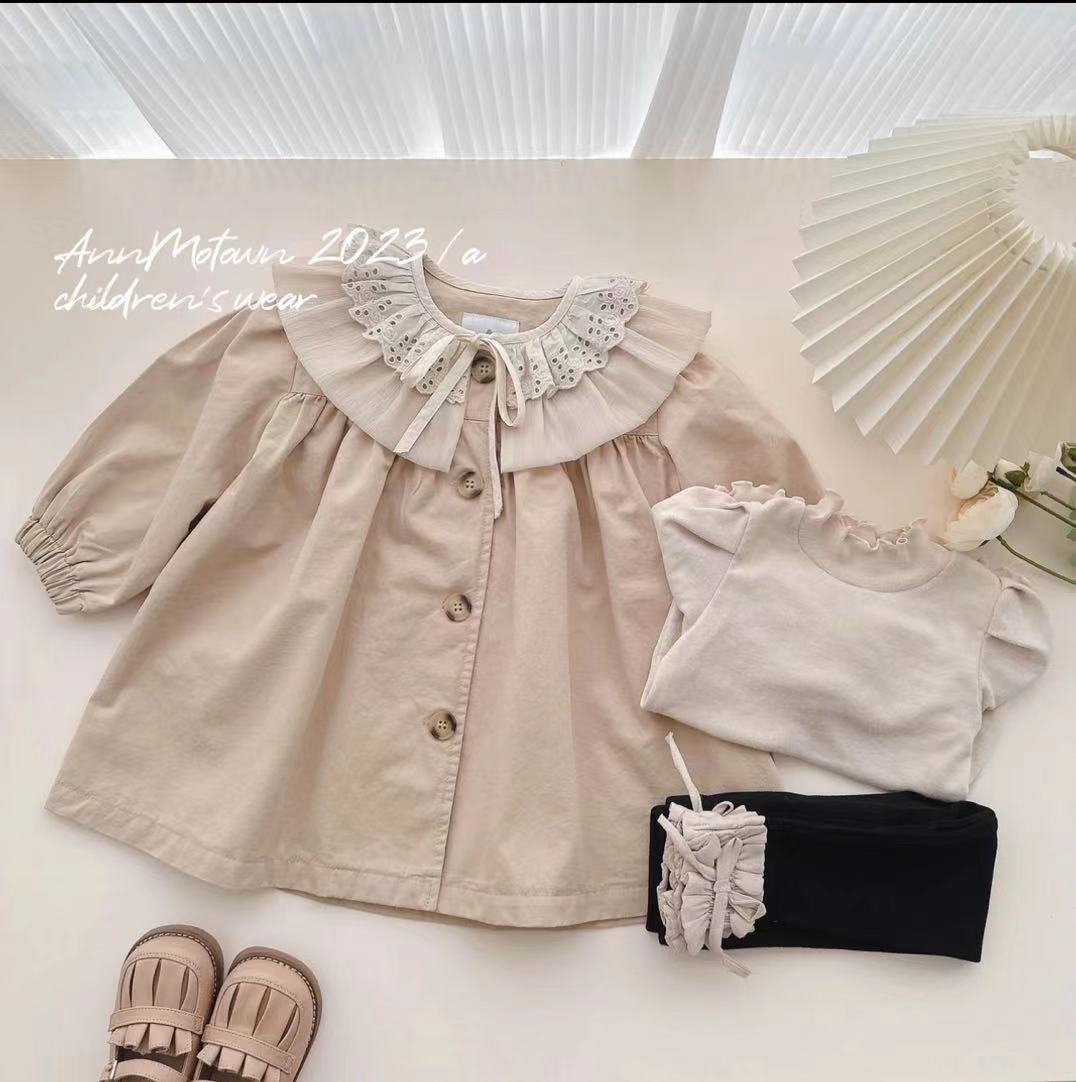 童装2023年秋季新款双层大翻领风衣外套单排扣卡其色韩版外套秋季