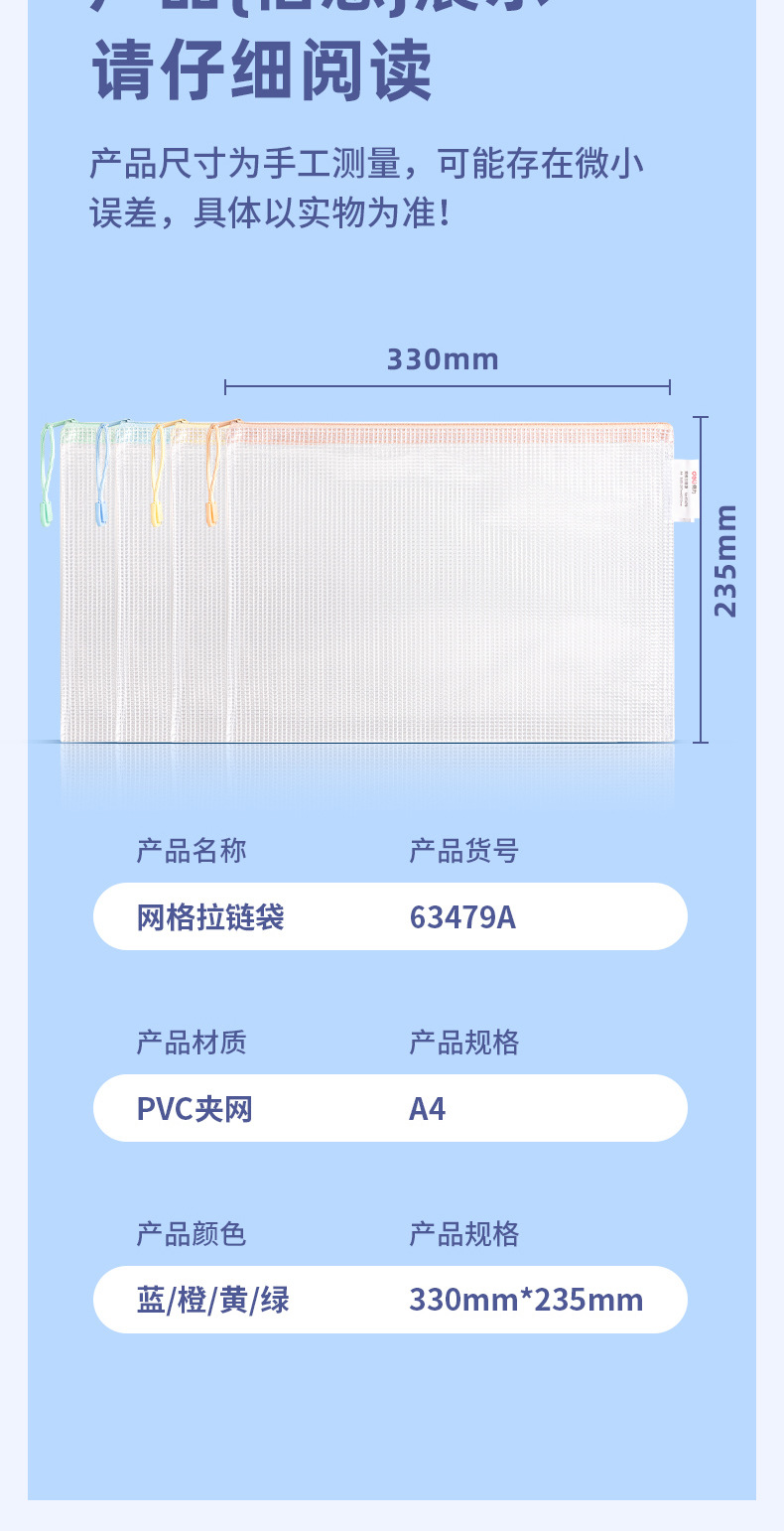 델리 63479A-A4 투명 그리드 지퍼 가방 학생 시험지 과목 분류 파일 보관 가방 파일 가방스토어 가기