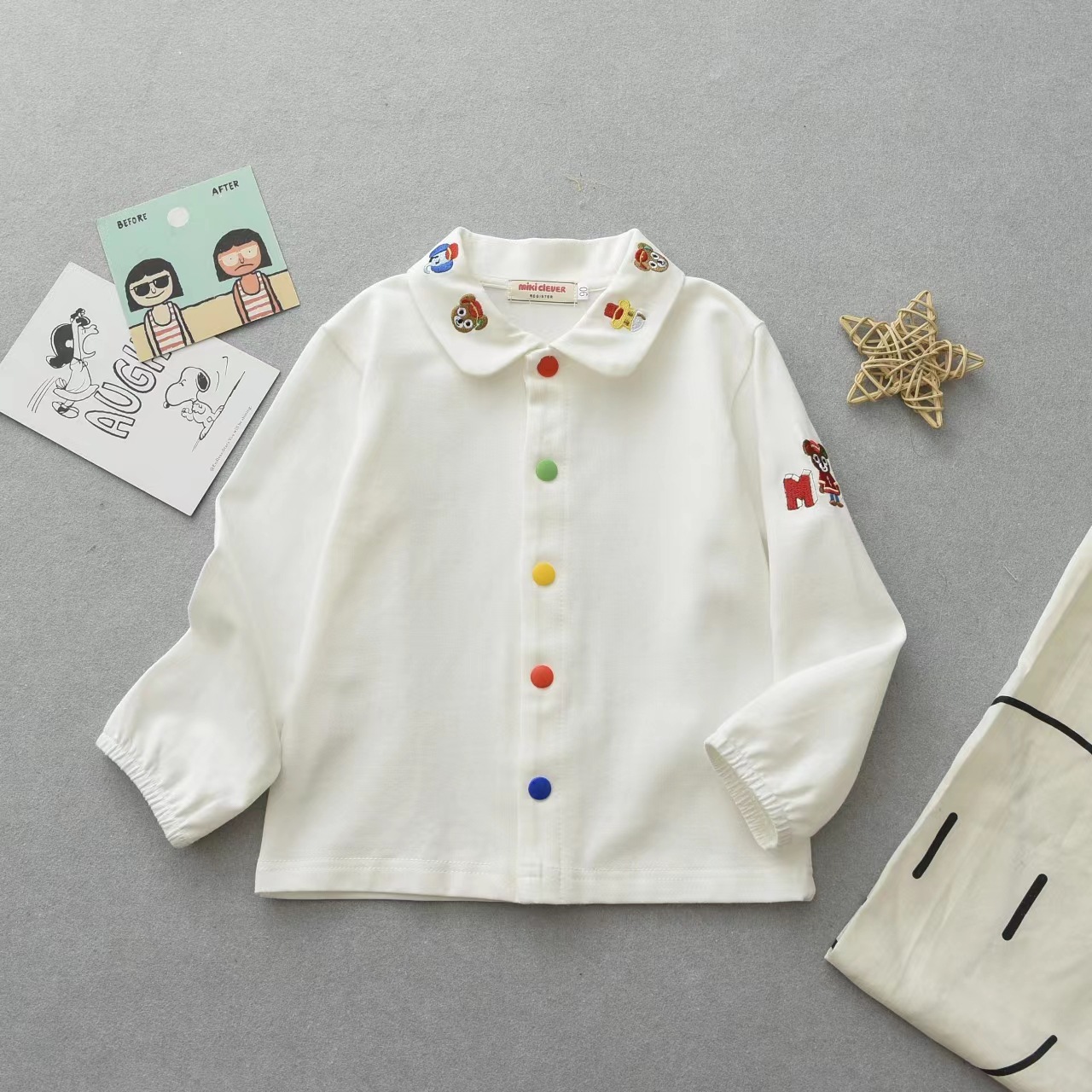 24 가을 신상 아동복 셔츠(남아 및 여아용), 만화 곰과 토끼 칼라, 긴팔 이너웨어 2759