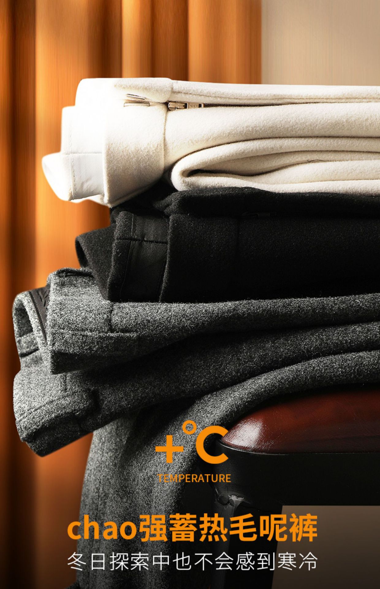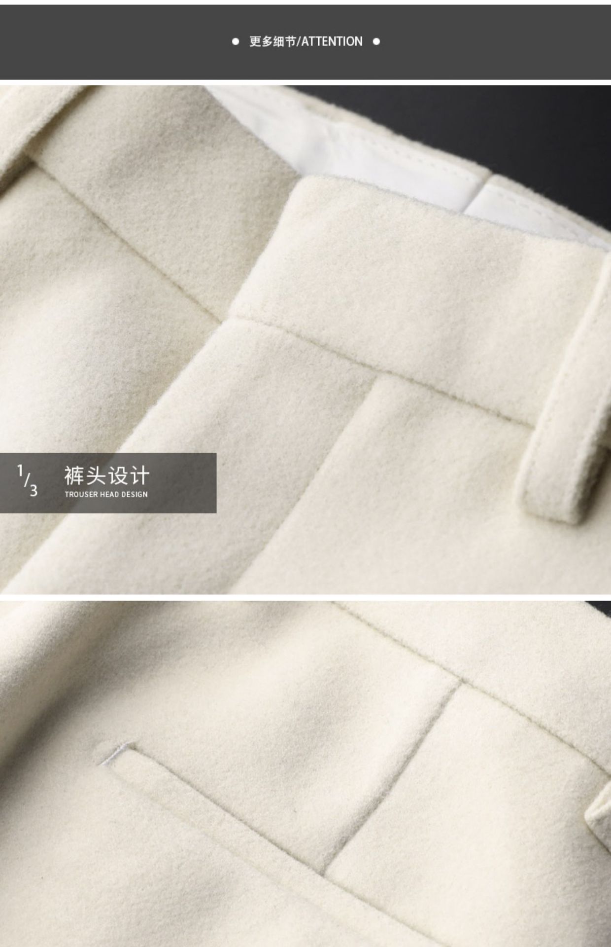 가을용 고급스러운 두꺼운 보온 모직 바지, 인조 양모 소재의 남성용 슬림핏 캐주얼 바지, 스트레이트 핏 남성 바지스토어 가기