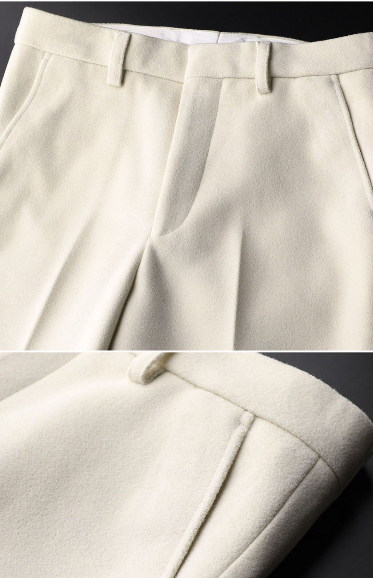 가을용 고급스러운 두꺼운 보온 모직 바지, 인조 양모 소재의 남성용 슬림핏 캐주얼 바지, 스트레이트 핏 남성 바지