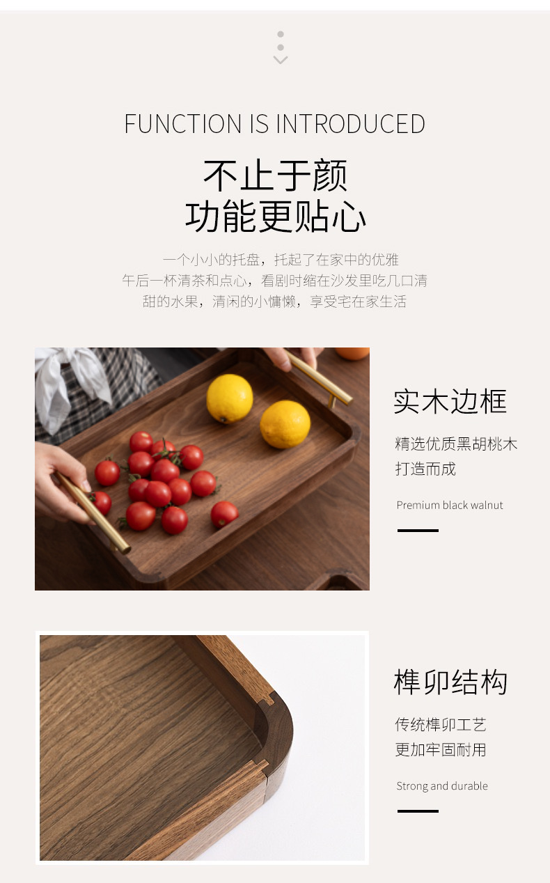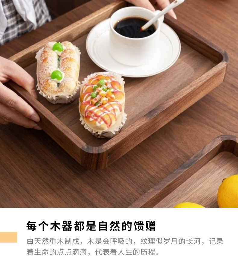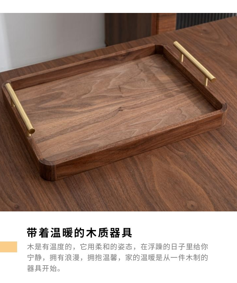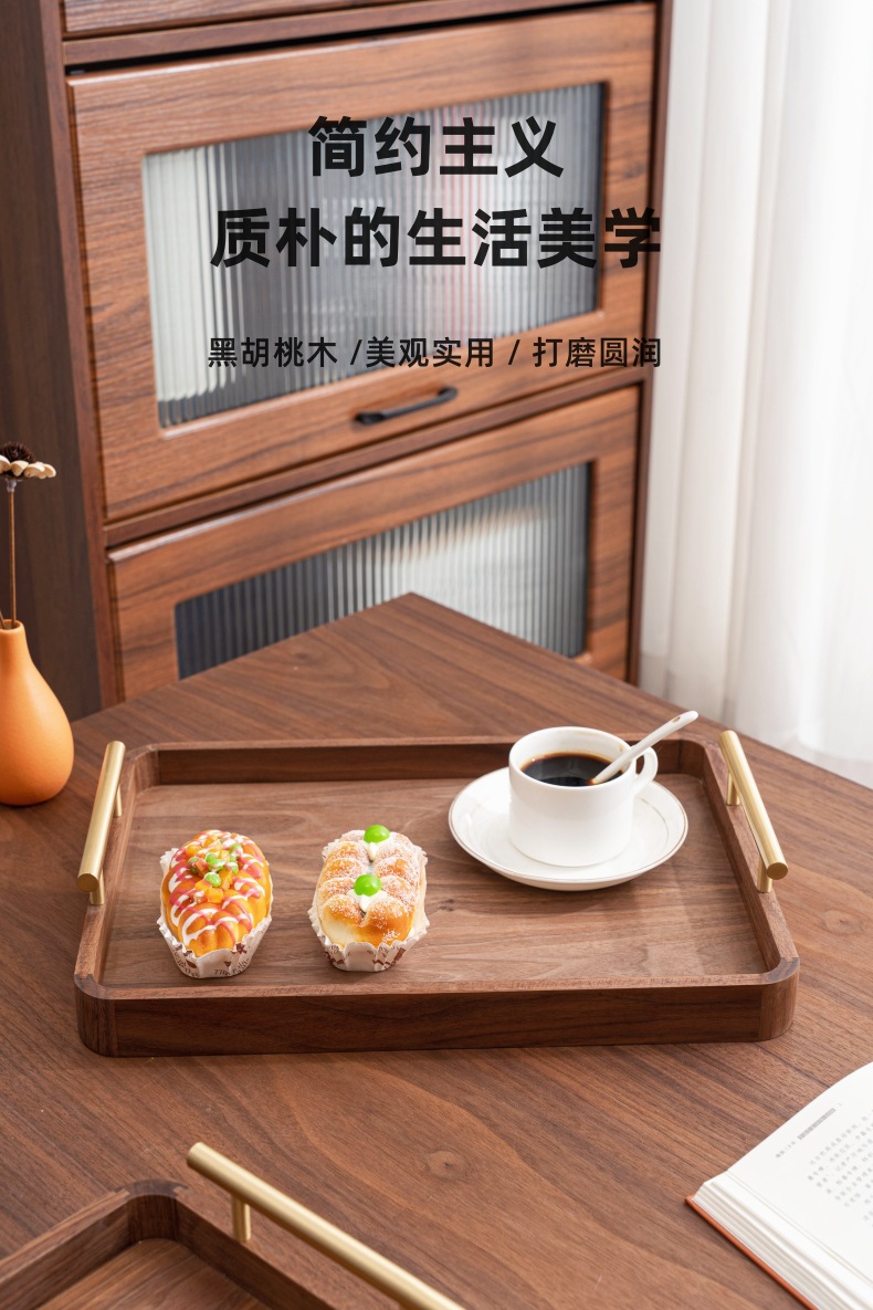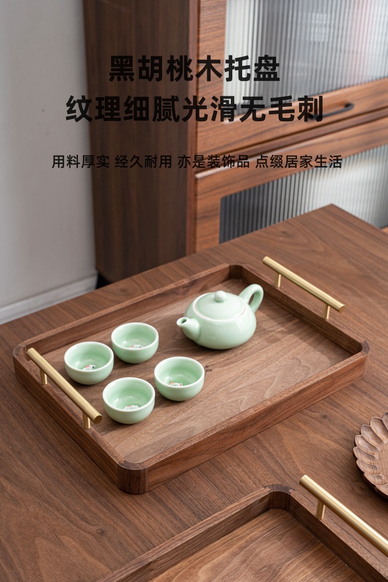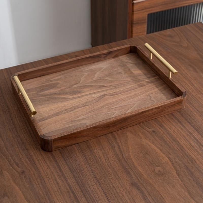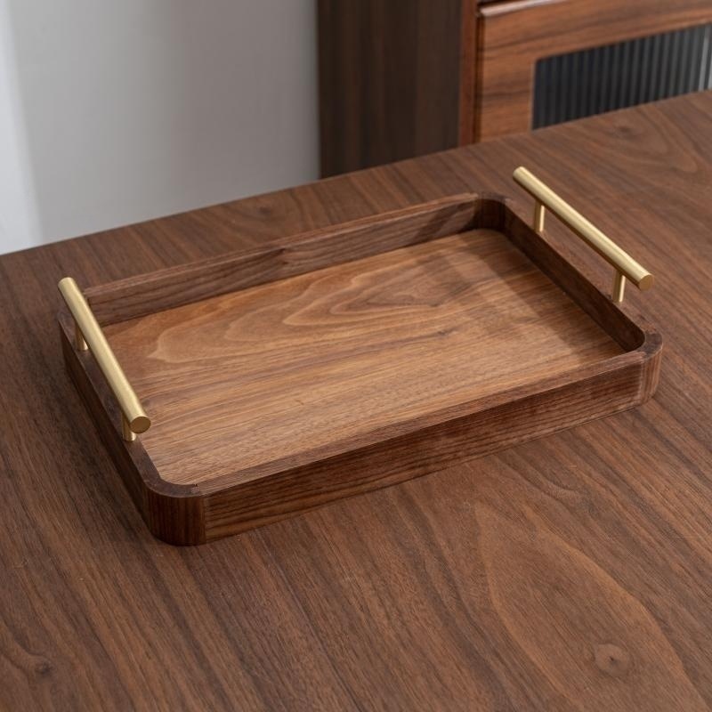 블랙 월넛 라이트 럭셔리 빈티지 단단한 나무 트레이 티 트레이 직사각형 나무 트레이 가정용 대형 나무 보관 접시스토어 가기