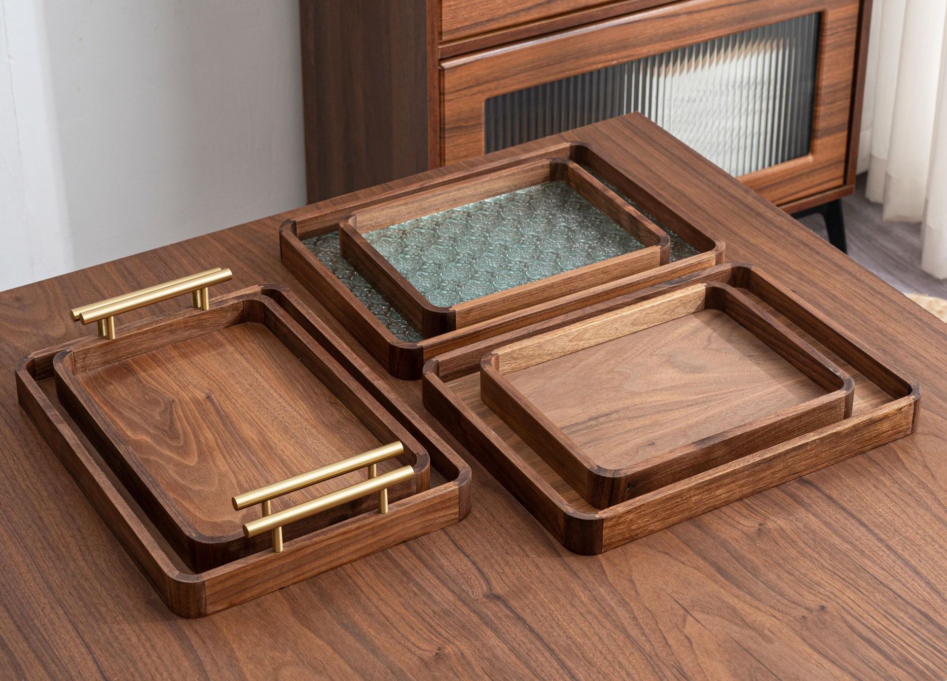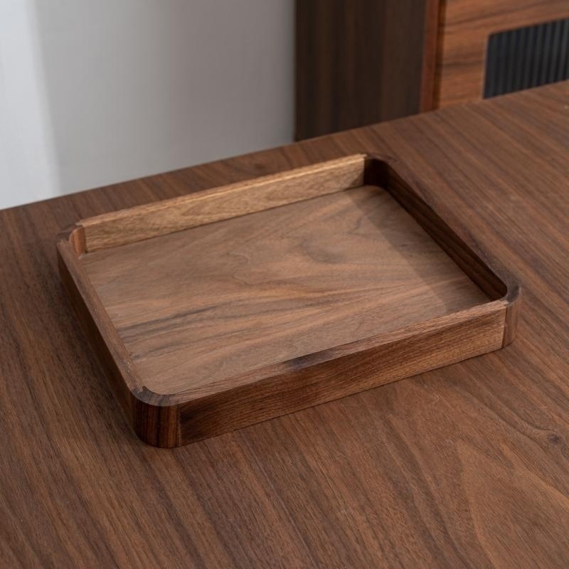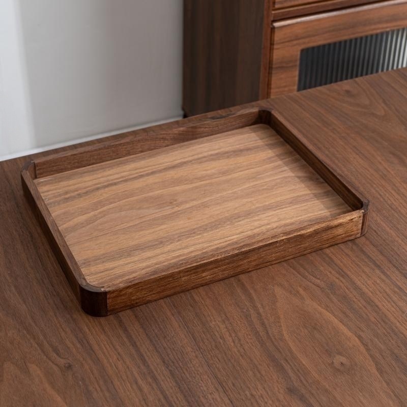 블랙 월넛 라이트 럭셔리 빈티지 단단한 나무 트레이 티 트레이 직사각형 나무 트레이 가정용 대형 나무 보관 접시
