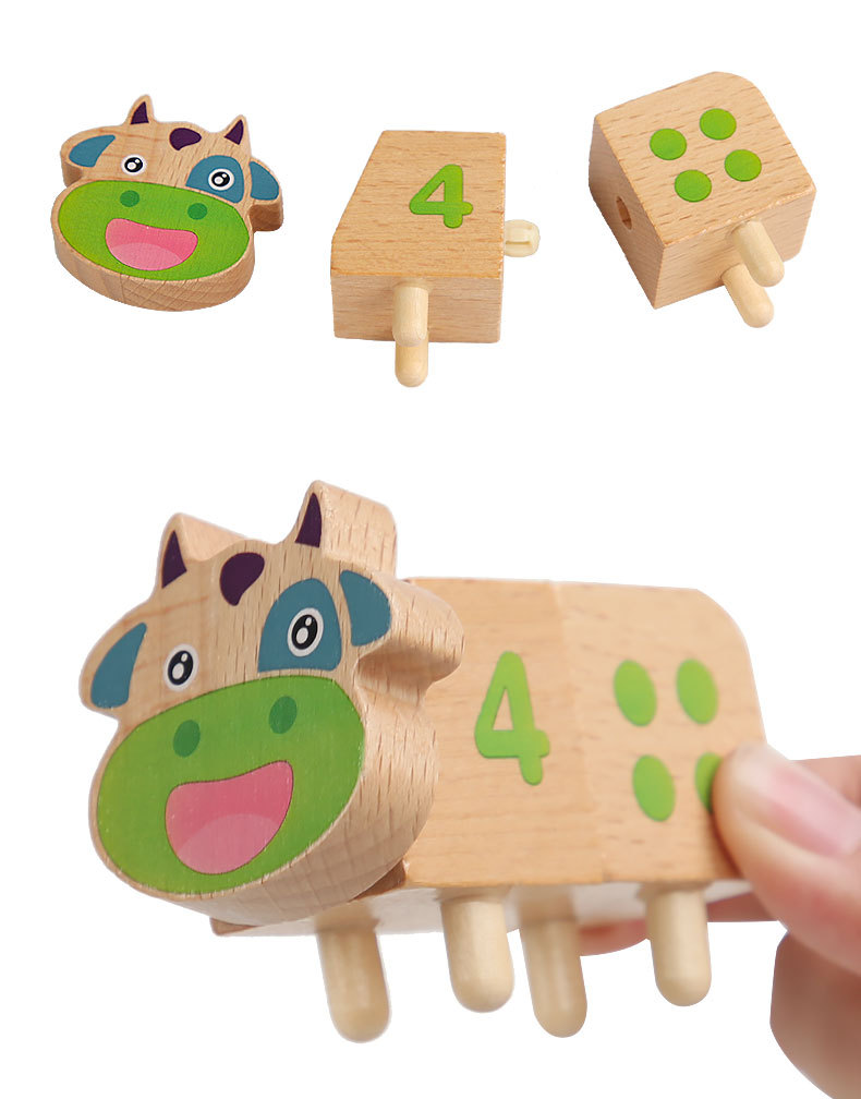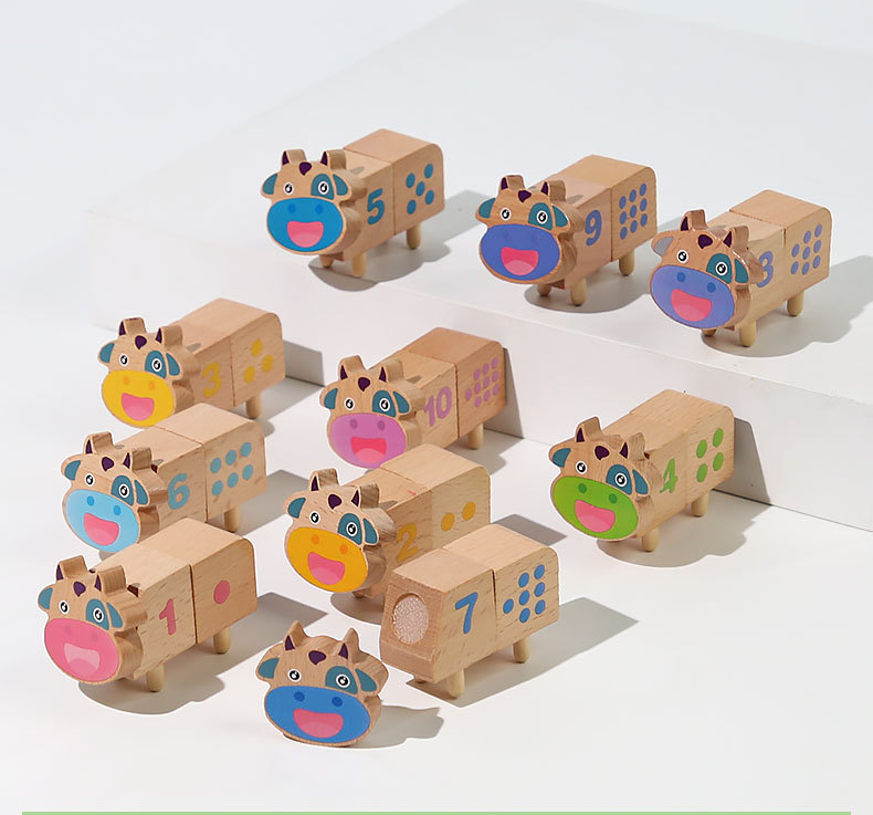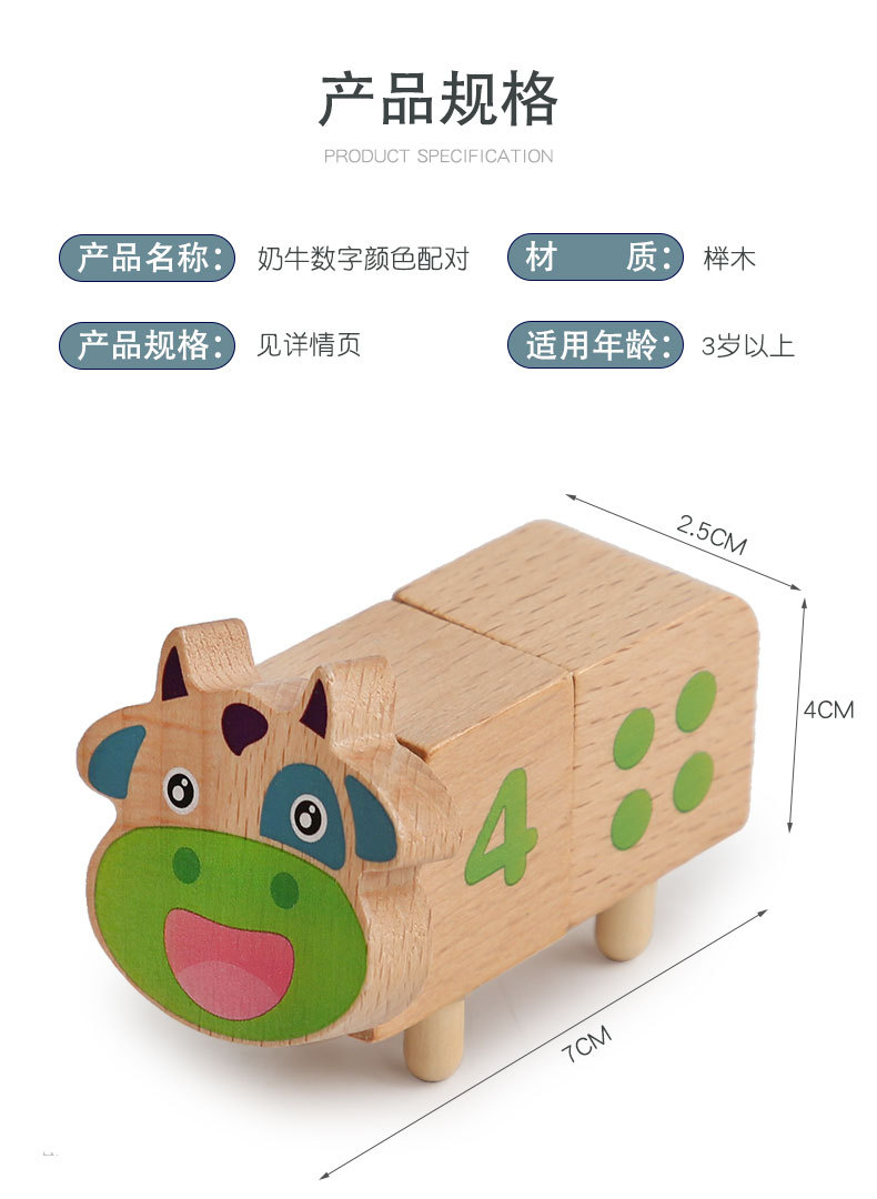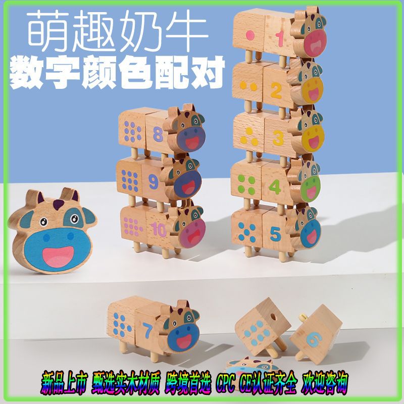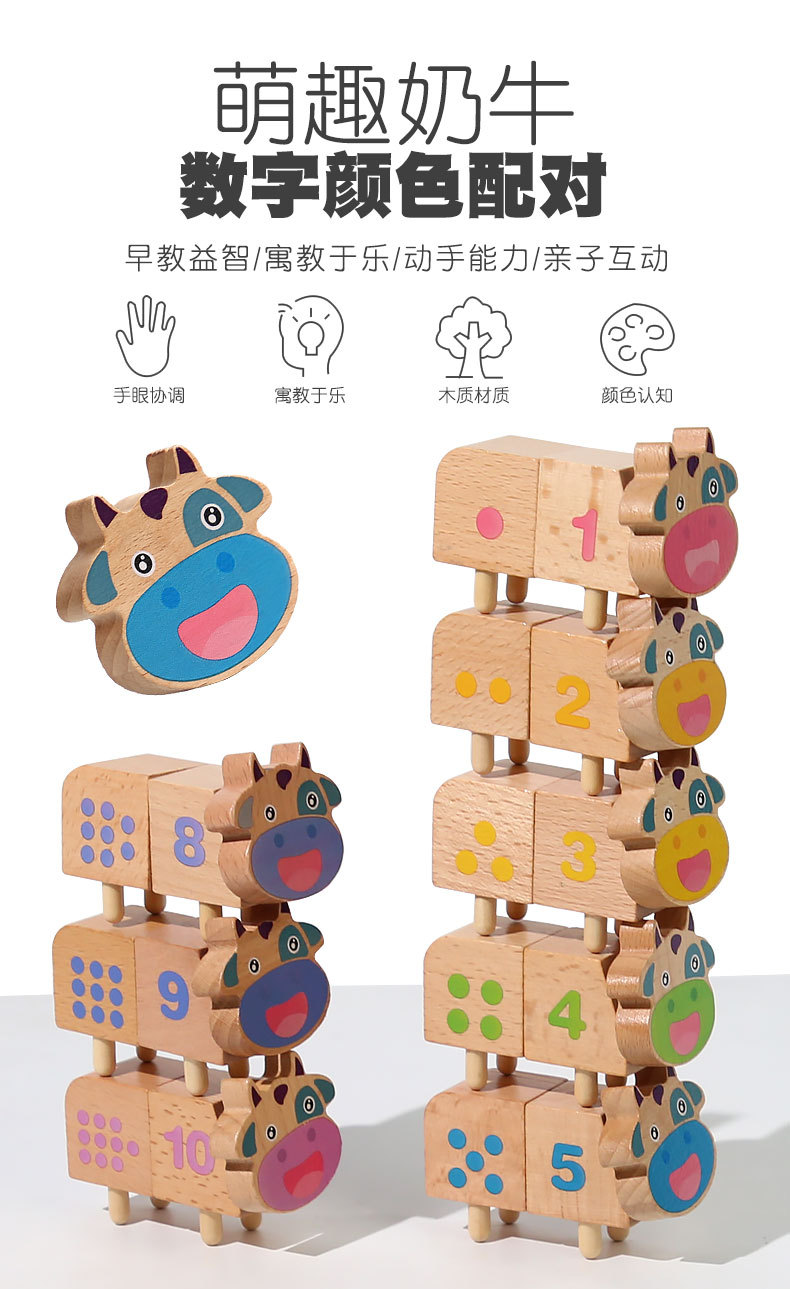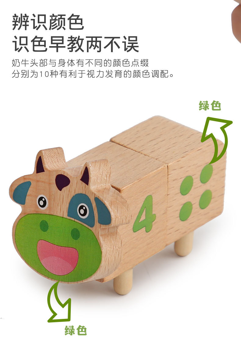 국경 간 단단한 나무 어린이 젖소 디지털 색상 일치 인지 장난감 조기 교육 창조적 인 DIY 스윙 퍼즐 교육 보조스토어 가기