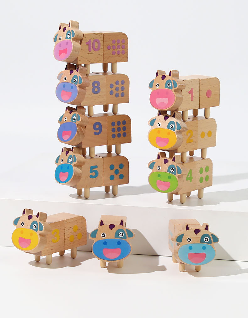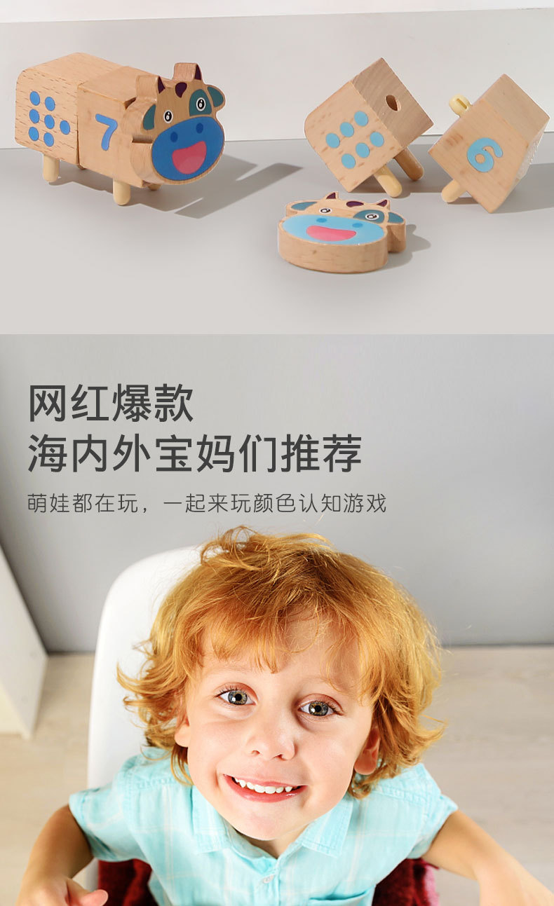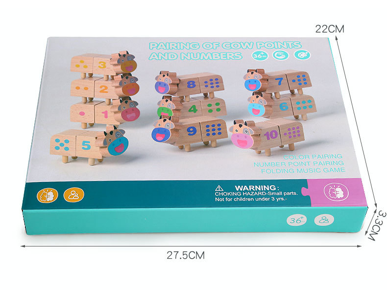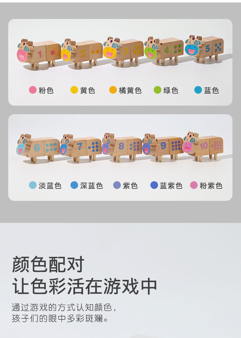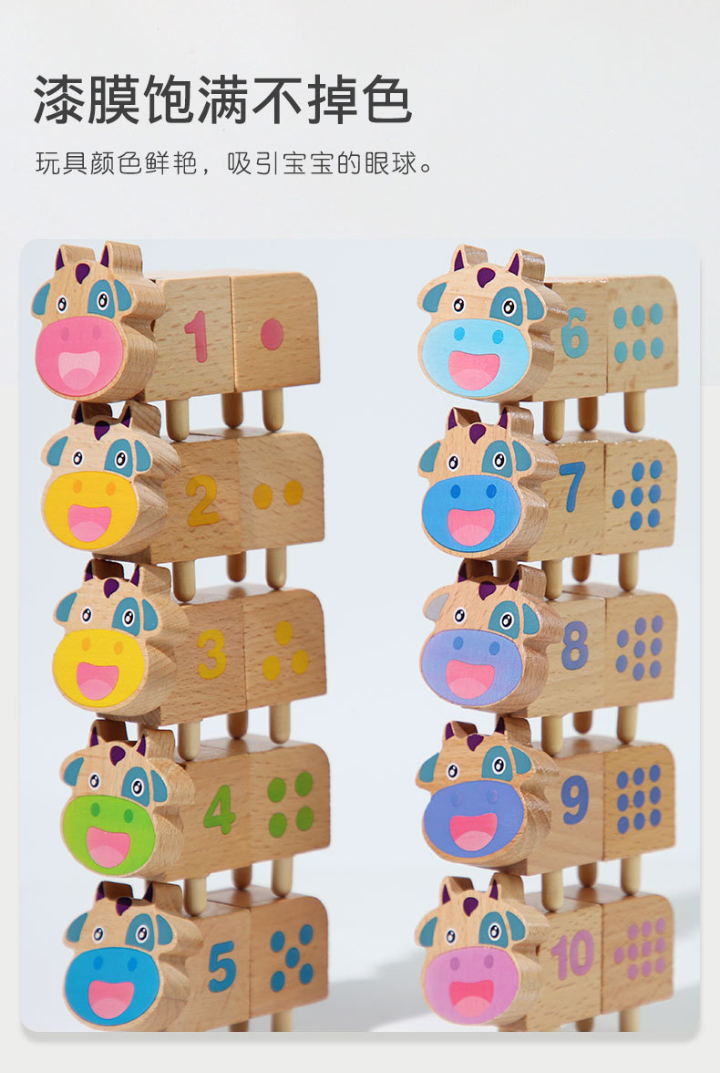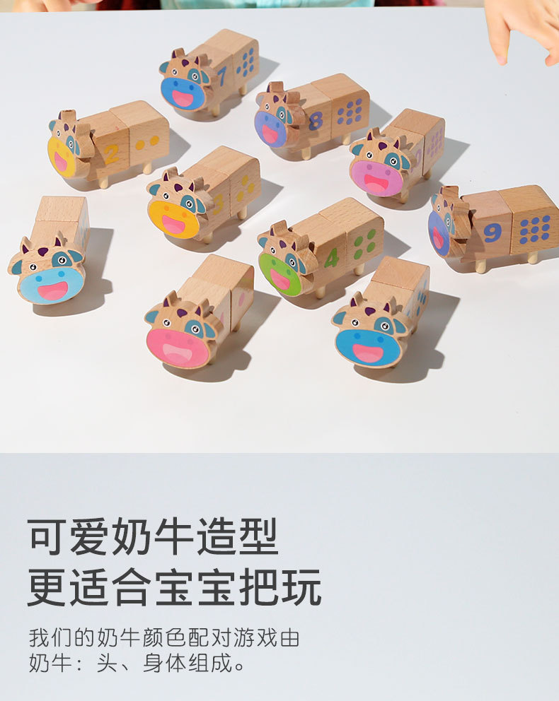 국경 간 단단한 나무 어린이 젖소 디지털 색상 일치 인지 장난감 조기 교육 창조적 인 DIY 스윙 퍼즐 교육 보조스토어 가기