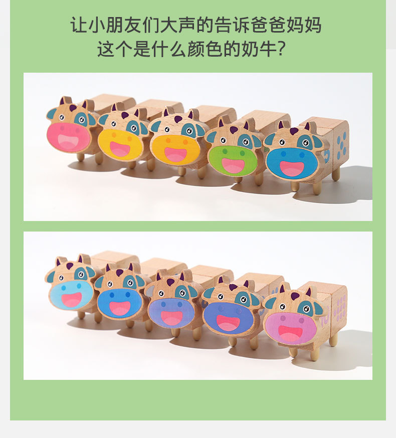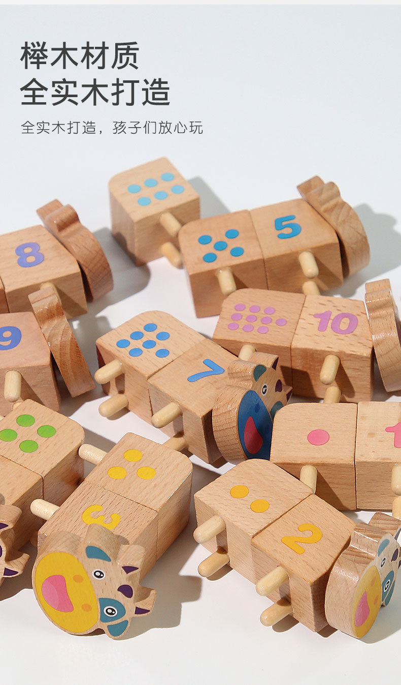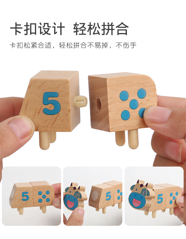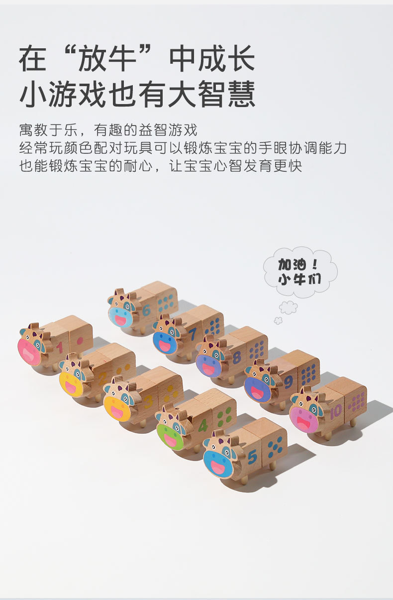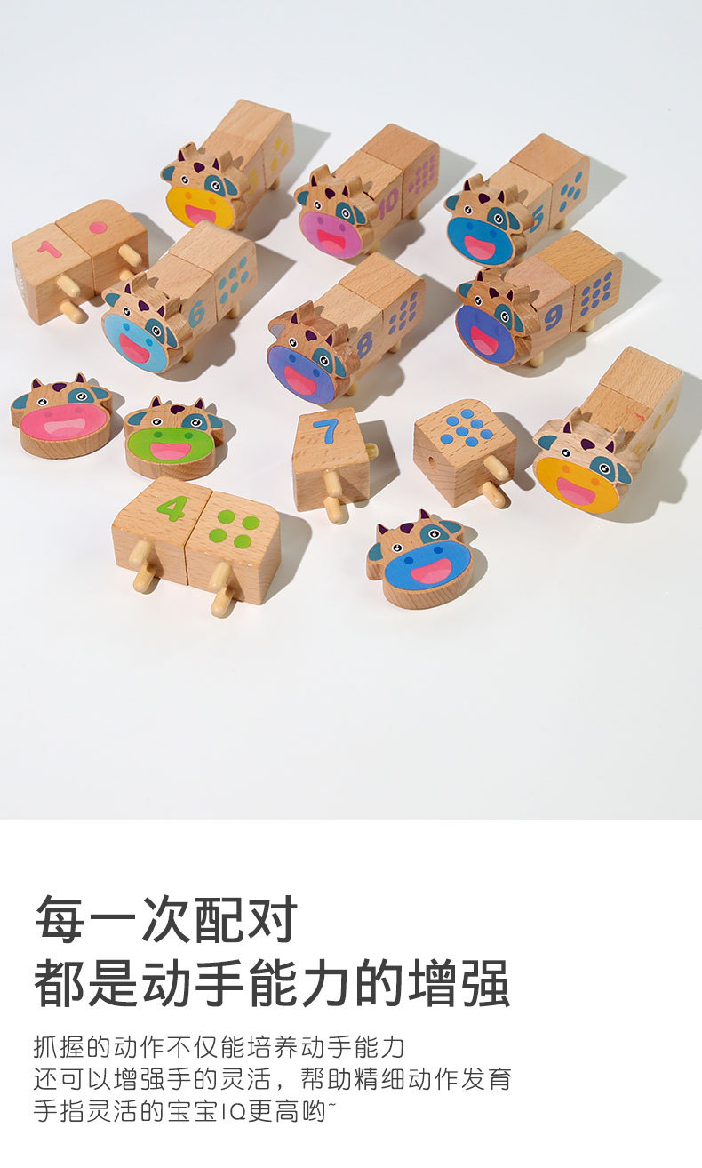 국경 간 단단한 나무 어린이 젖소 디지털 색상 일치 인지 장난감 조기 교육 창조적 인 DIY 스윙 퍼즐 교육 보조스토어 가기