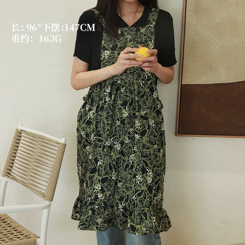 해외 무역 국경 면 한국 꽃 앞치마 가정용 주방 앞치마 포켓 허리 턱받이 공장 도매스토어 가기