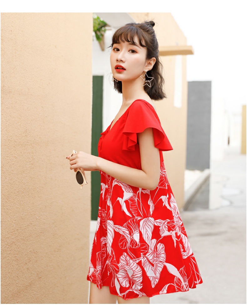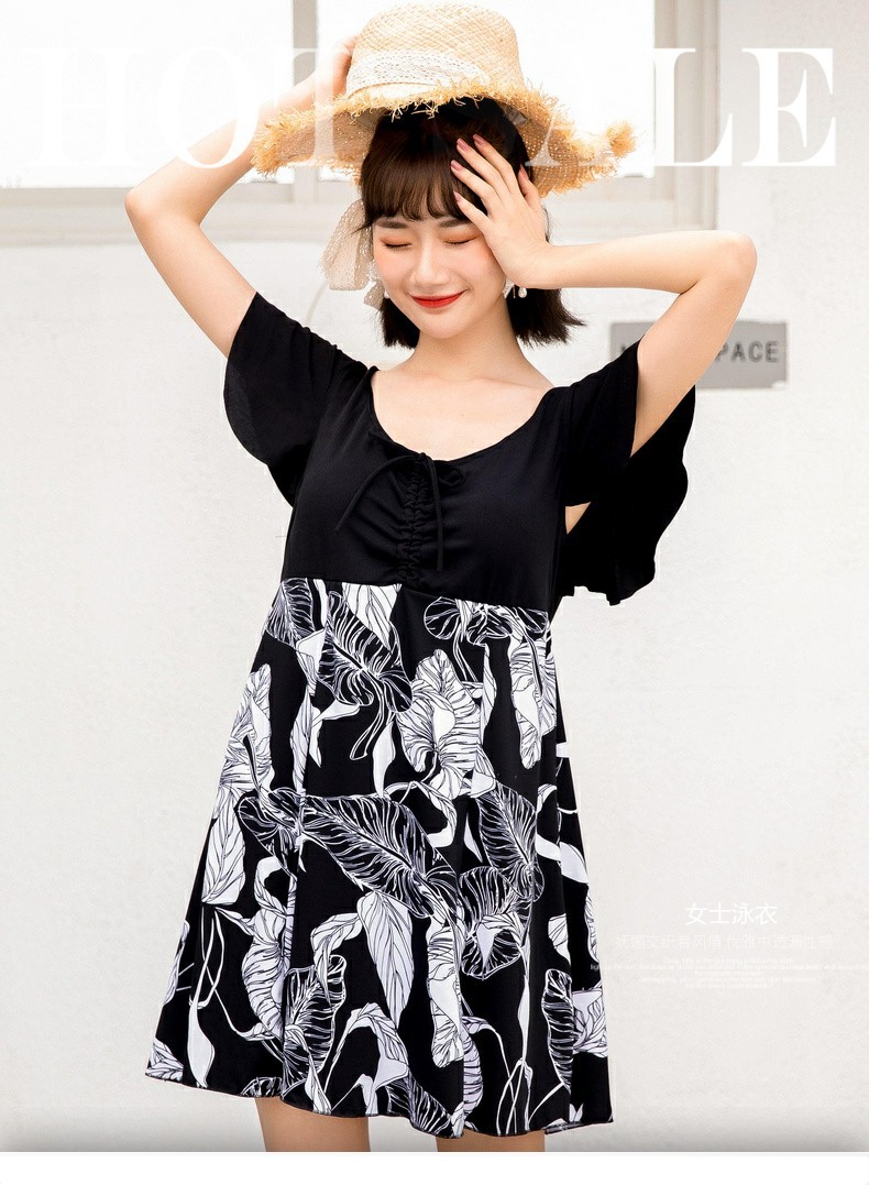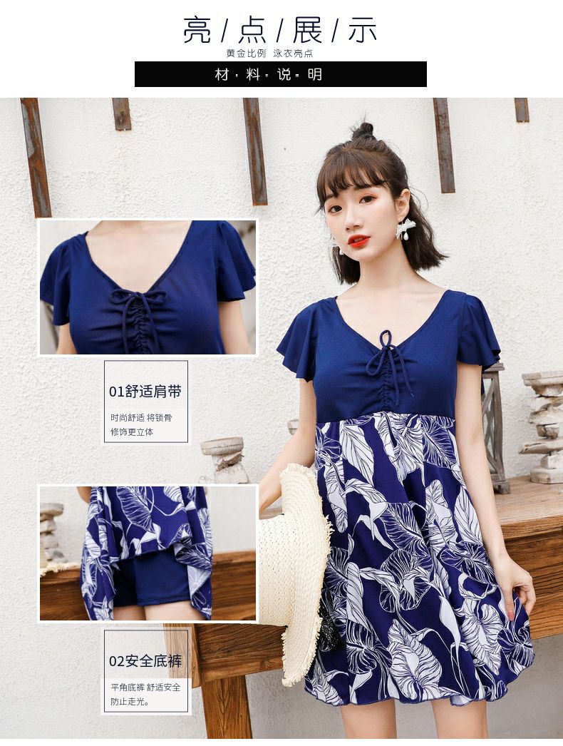 플러스 사이즈 수영복 여자의 온천 스커트 원피스 수영복 보수적 인 배꼽 커버 중년 어머니의 복서 수영복 도매