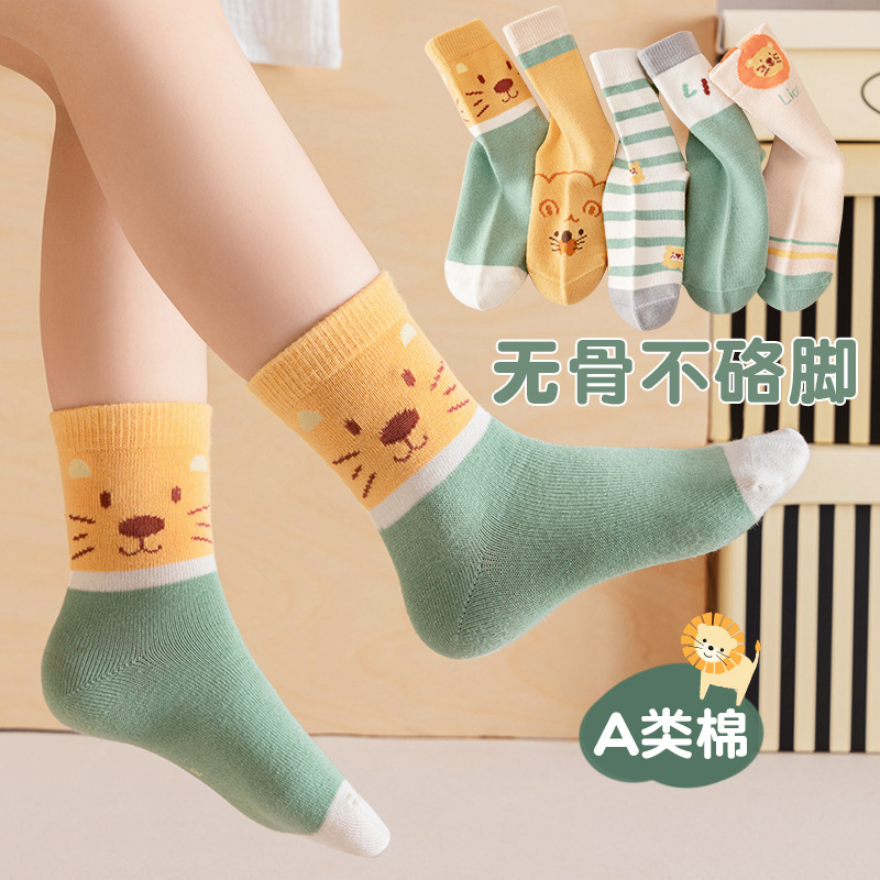 • 23-W5-7A 항균 [가을면양말] 귀여운 사자-5켤레