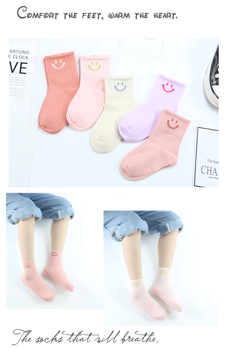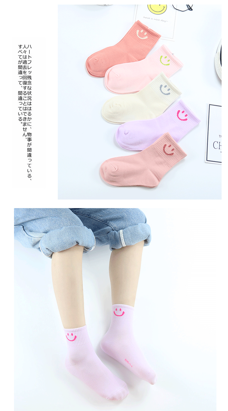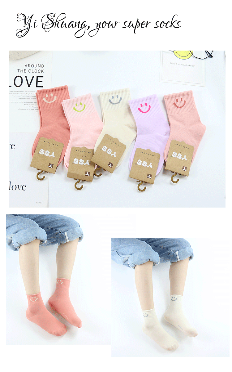 이순신 쌍 어린이 양말 가을과 겨울 새로운 만화 스마일 양말 빗질 면 소녀 스포츠 양말 학생 면 양말스토어 가기