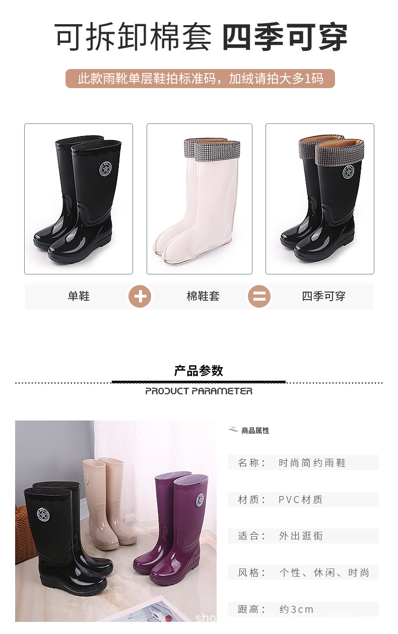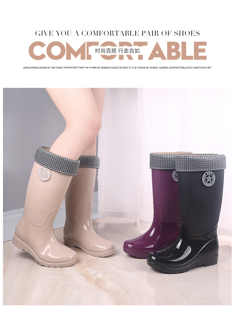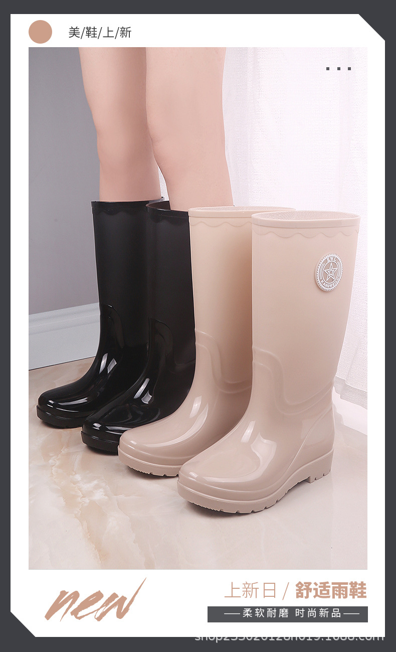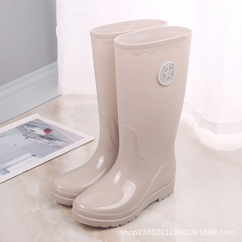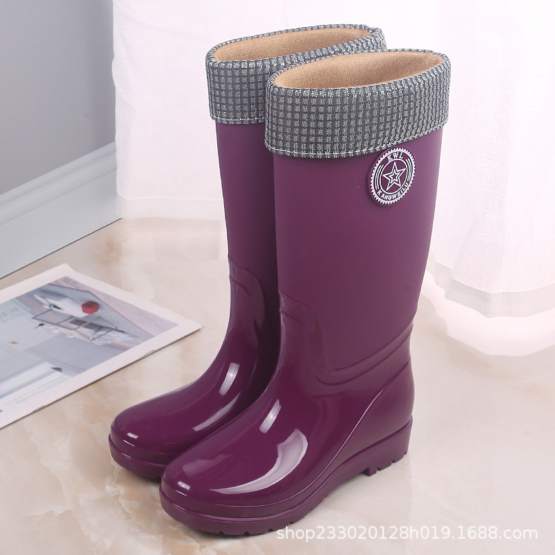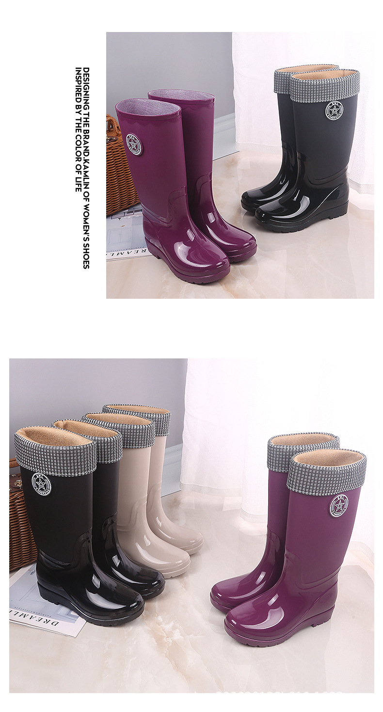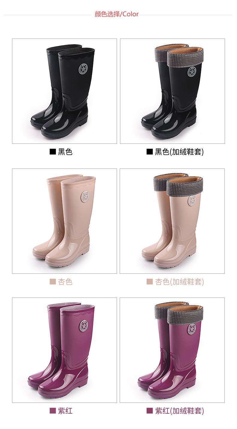 패션 레인 부츠 여성의 높은 물 신발 기모 따뜻한 미끄럼 방지 장화 성인 여성 세차 물 부츠 작업 고무 신발스토어 가기