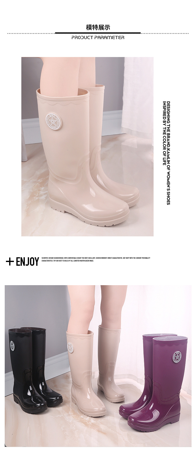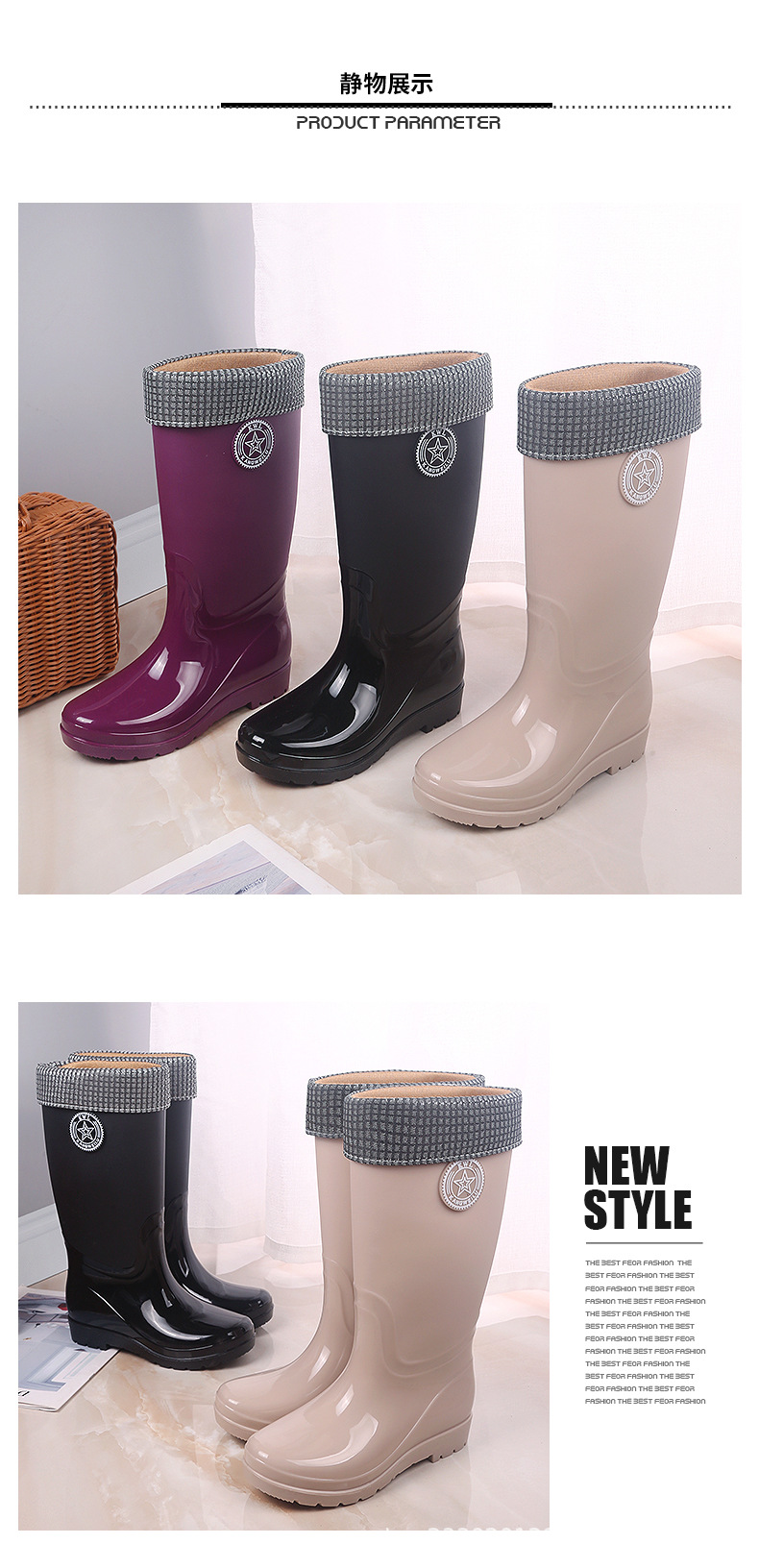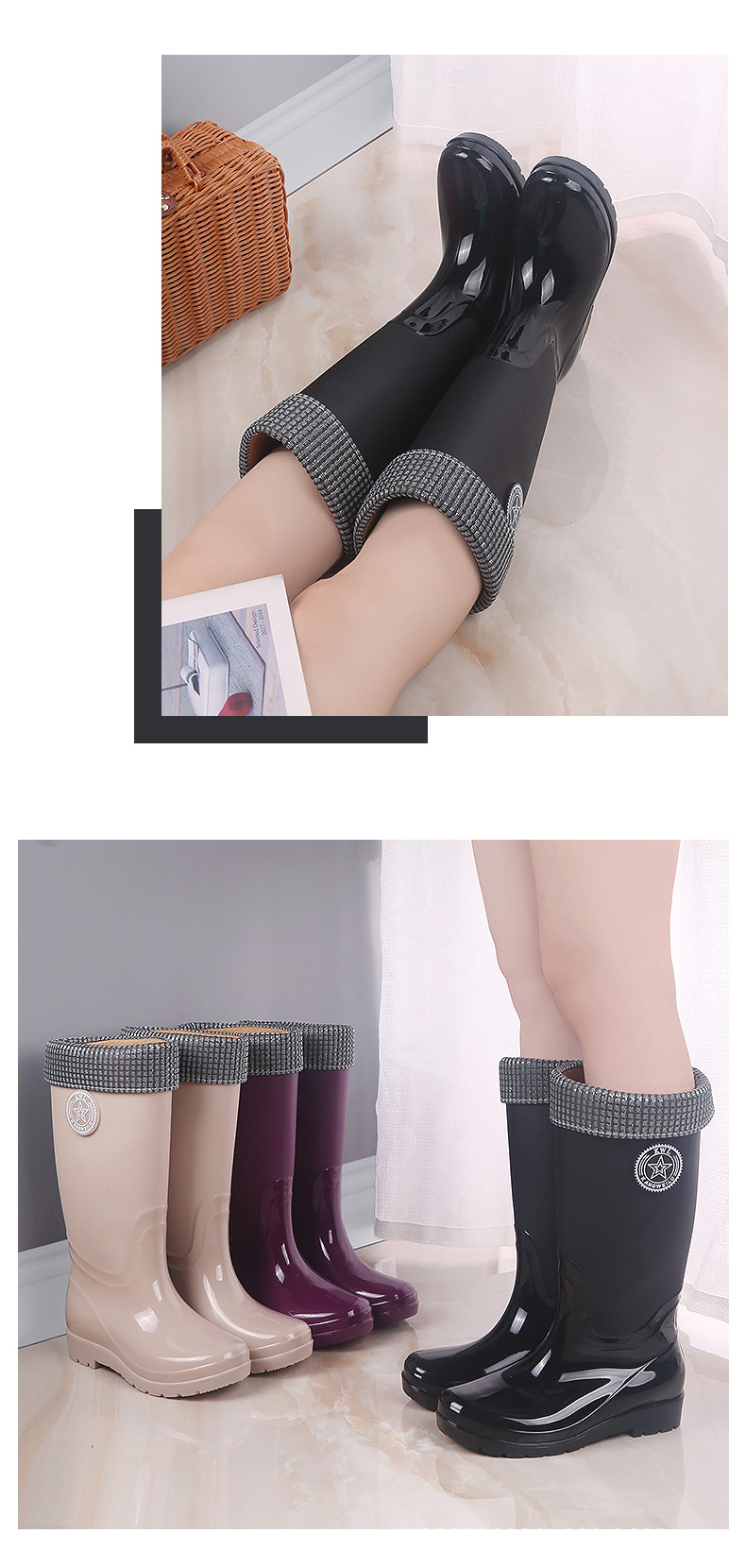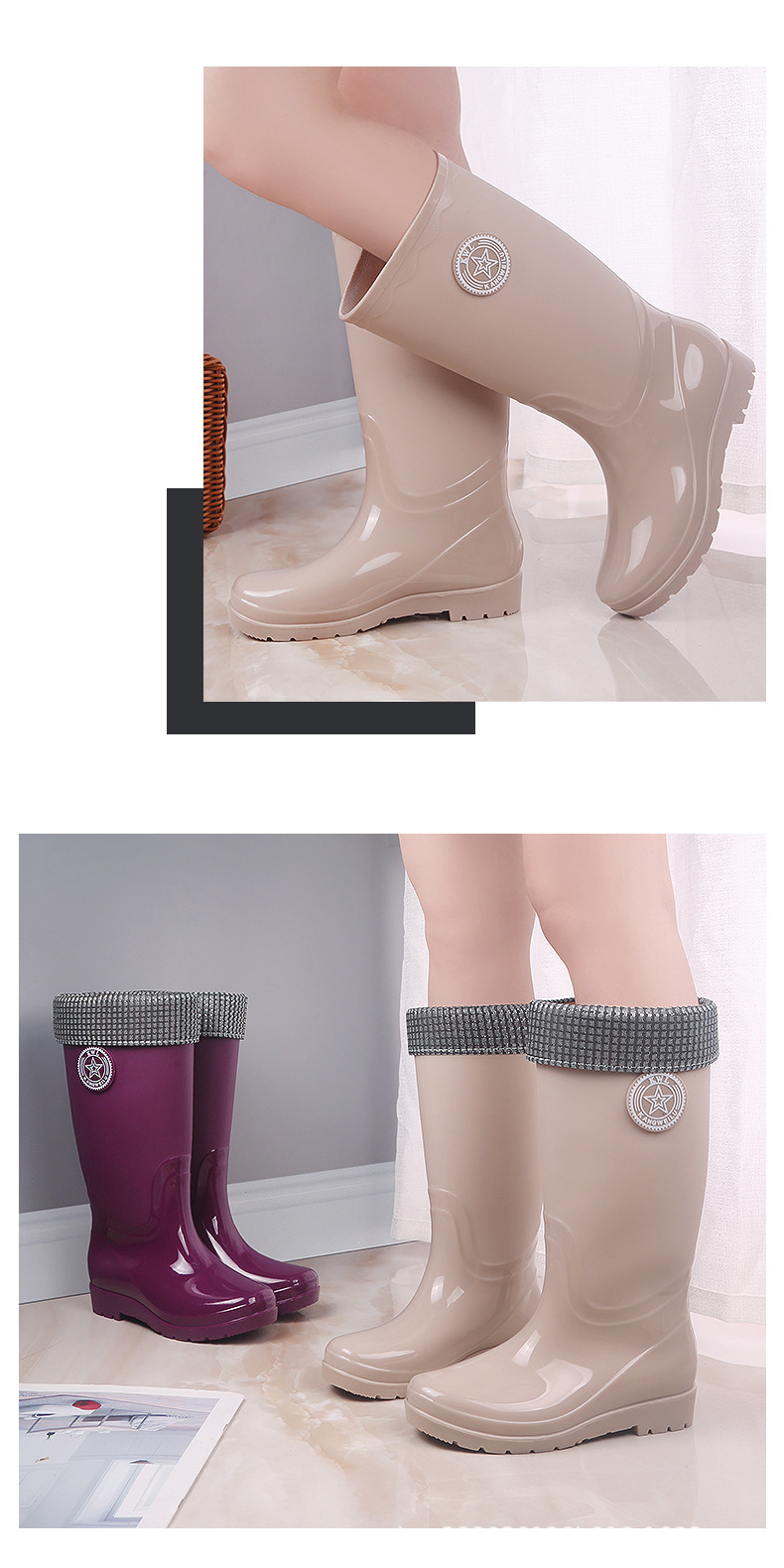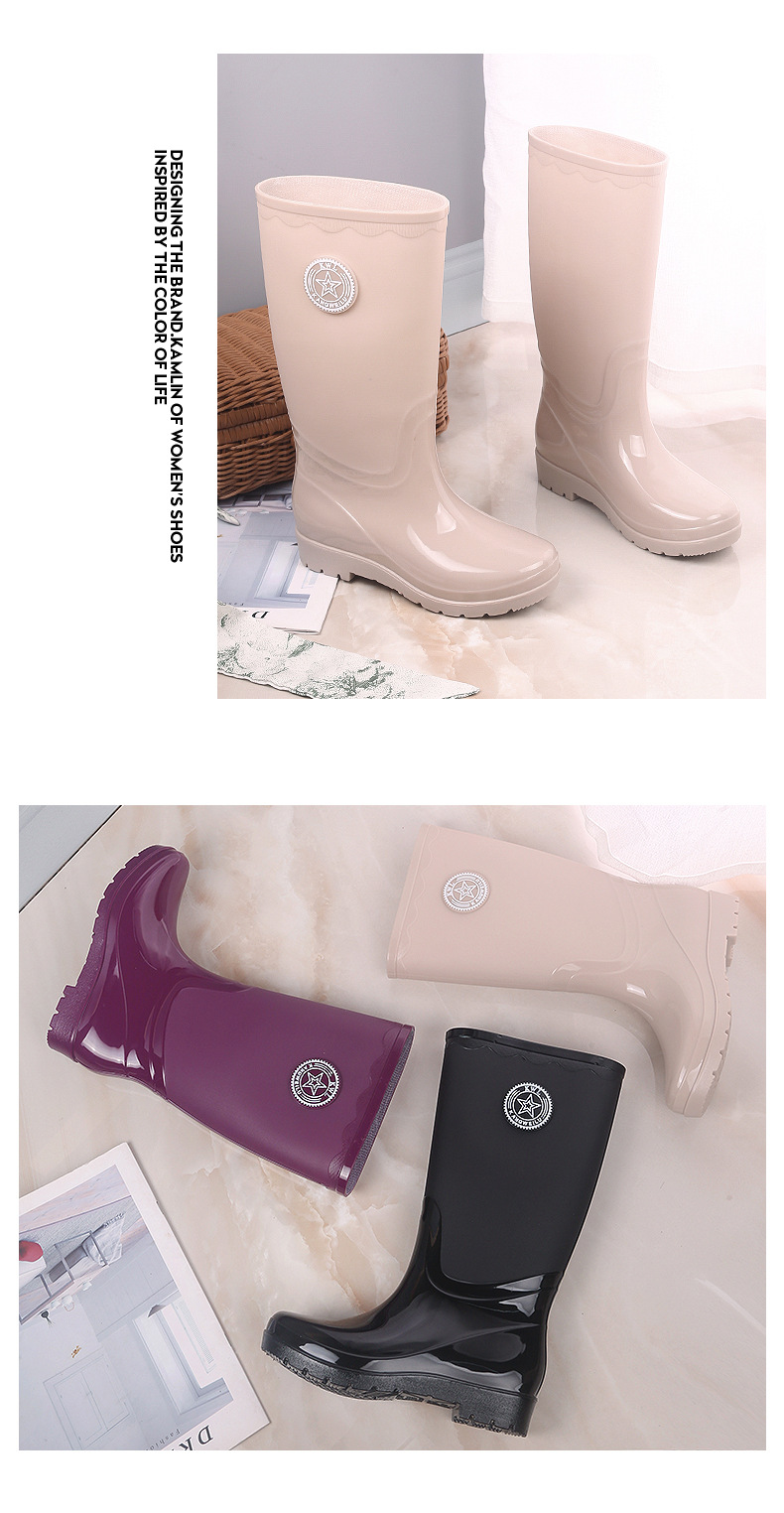 패션 레인 부츠 여성의 높은 물 신발 기모 따뜻한 미끄럼 방지 장화 성인 여성 세차 물 부츠 작업 고무 신발스토어 가기