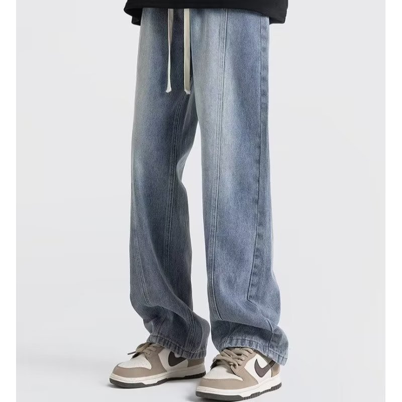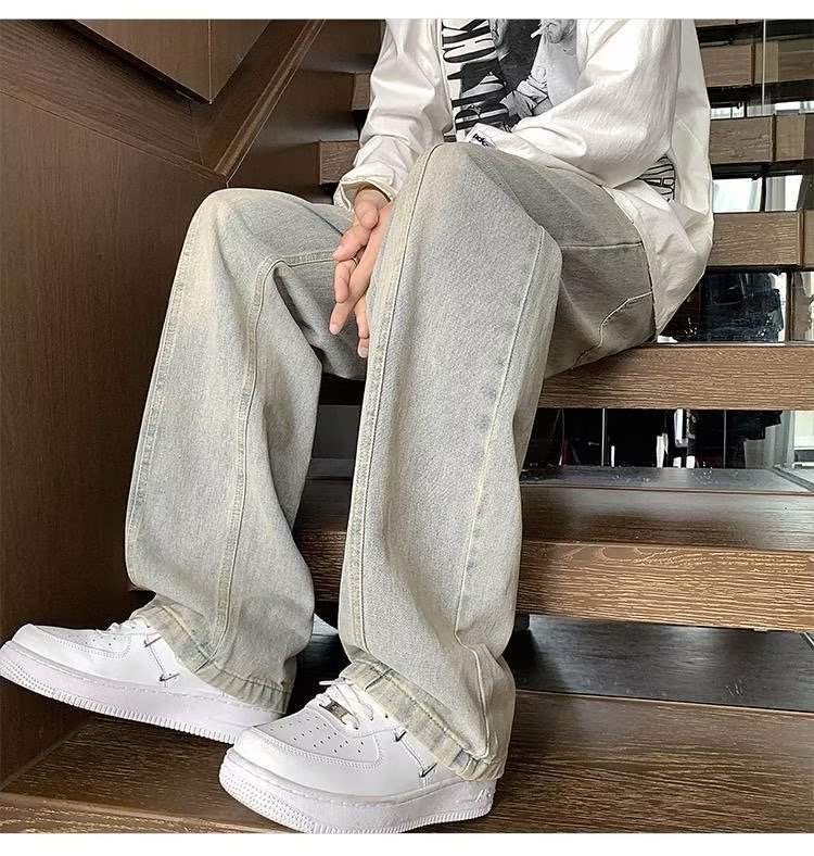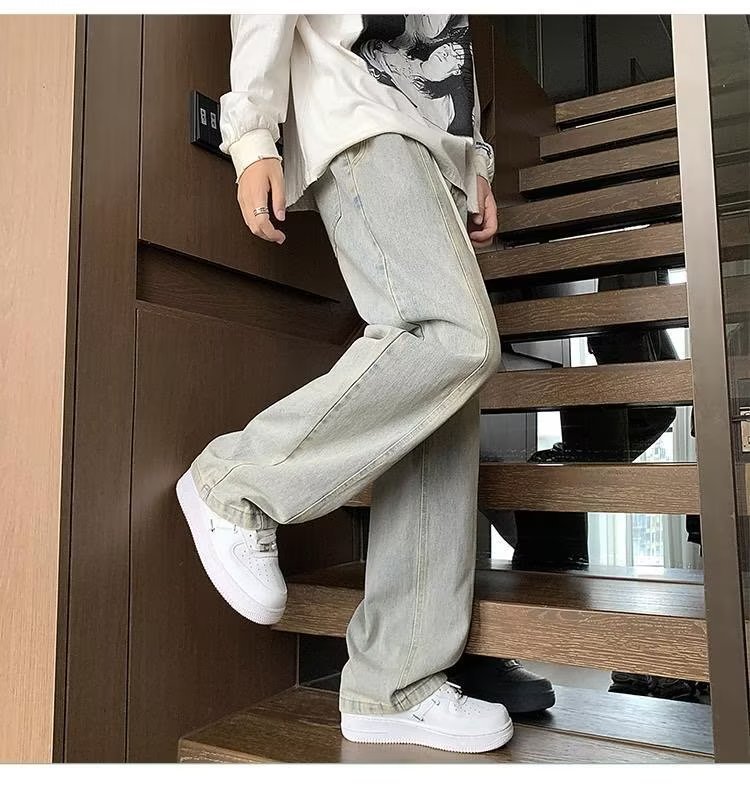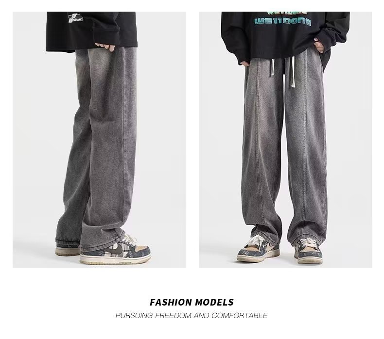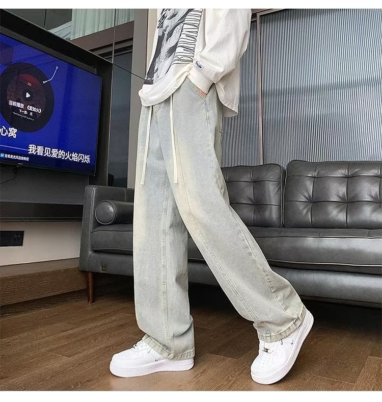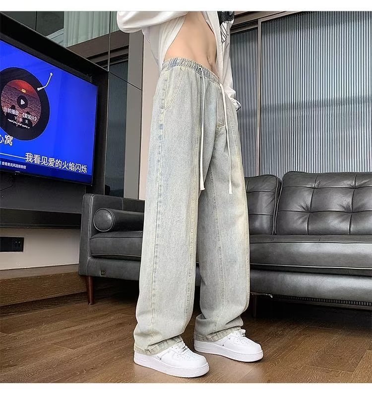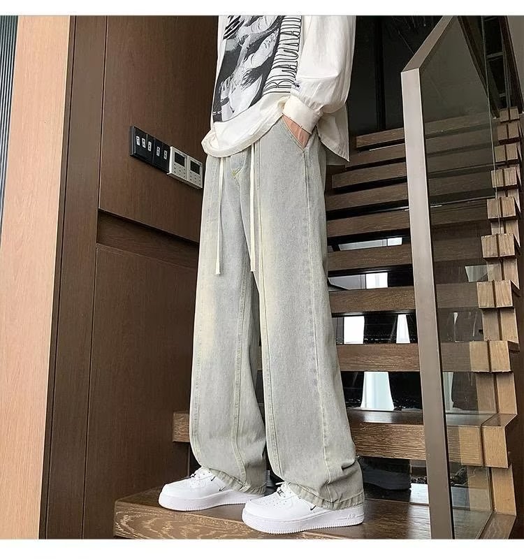 청바지 남자의 여름 미국 스타일 복고풍 특대 바지 와이드 레그 스트레이트 플로어 팬츠 하이 스트리트 유행 브랜드 아빠 바지스토어 가기