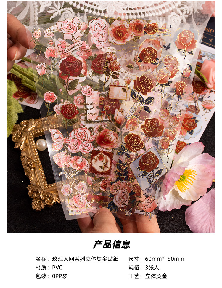 레트로 장미 인간 PVC 스테레오 브론징 스티커 로맨틱 꽃 손 계정 DIY 재료 콜라주 장식 작은 스티커