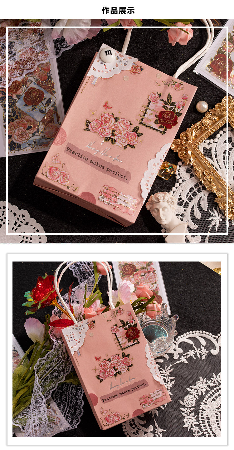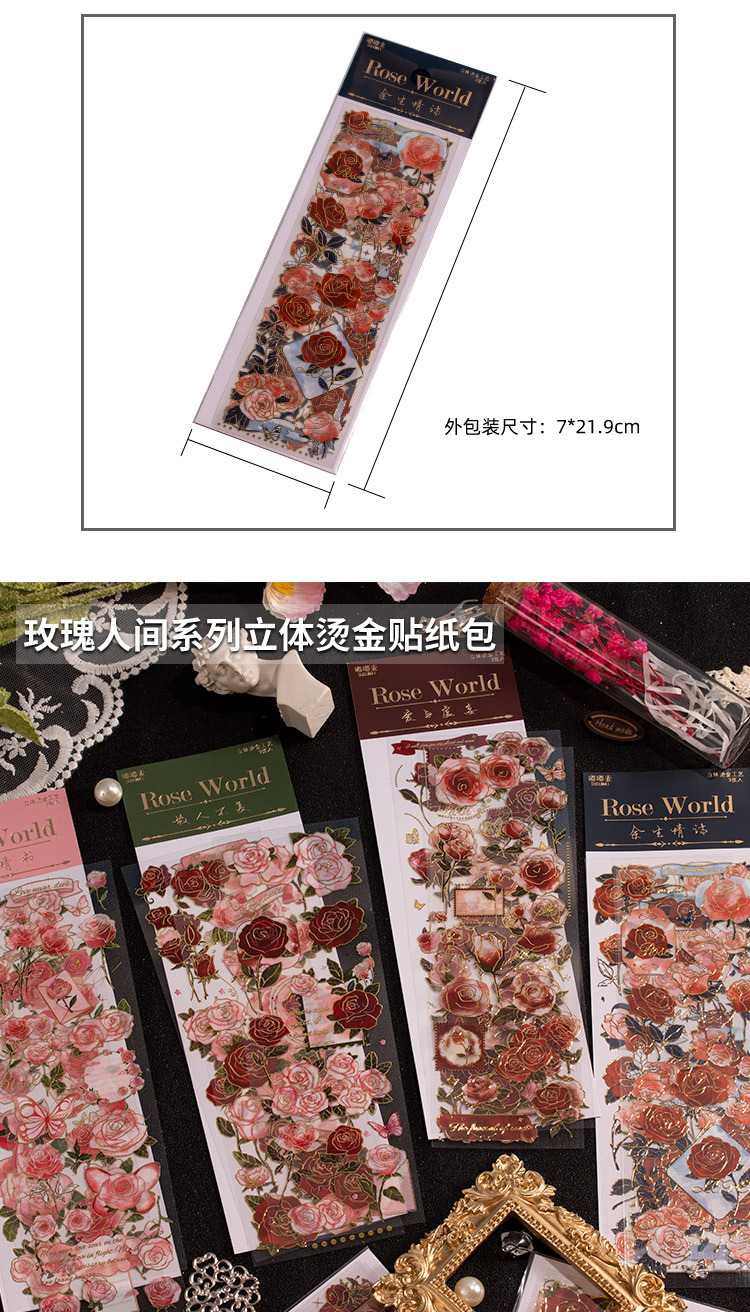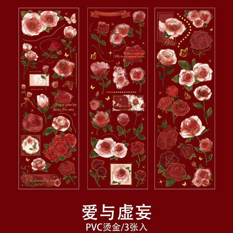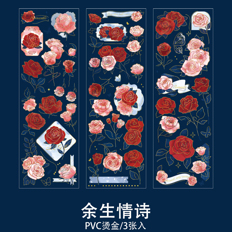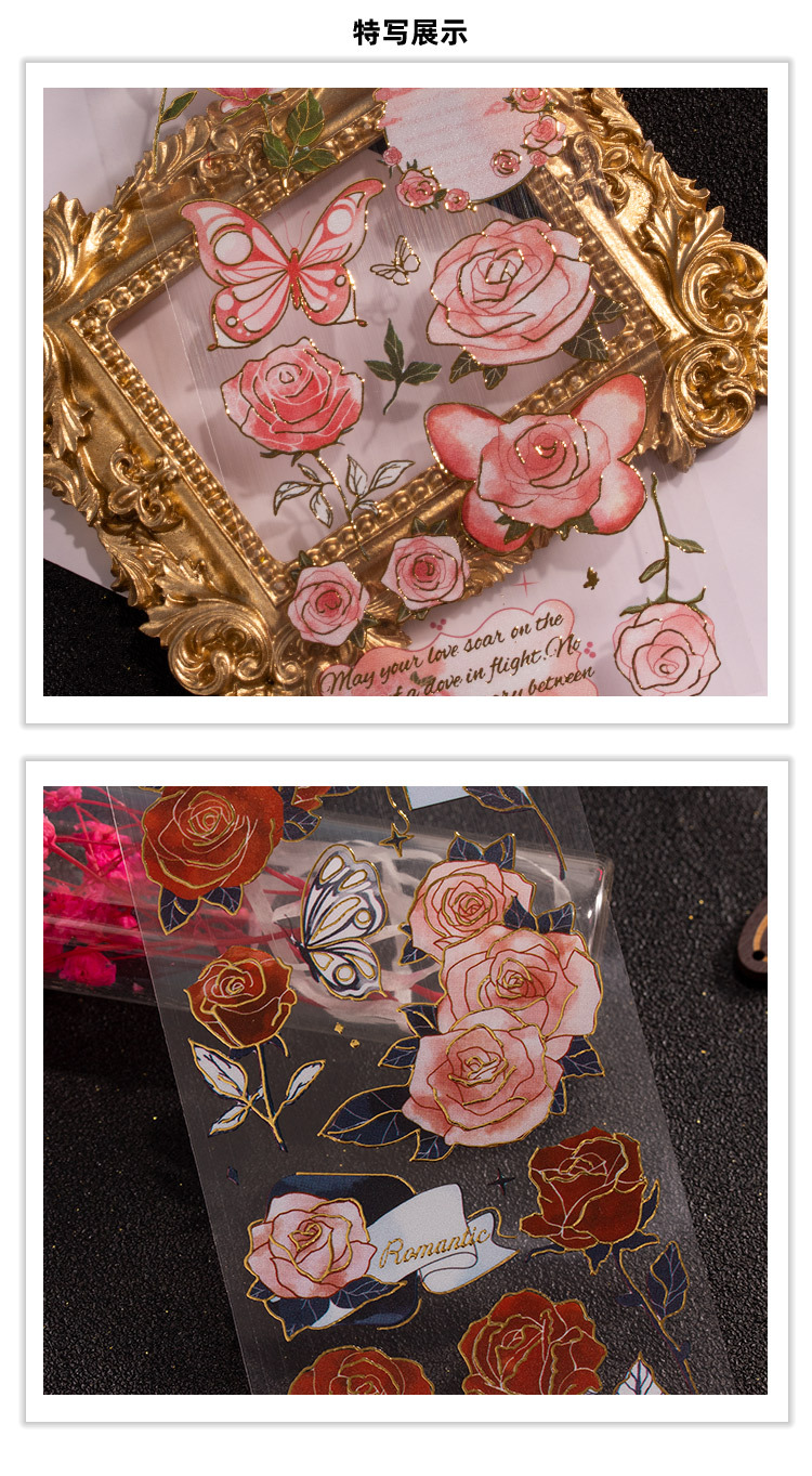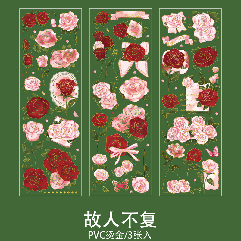 레트로 장미 인간 PVC 스테레오 브론징 스티커 로맨틱 꽃 손 계정 DIY 재료 콜라주 장식 작은 스티커스토어 가기