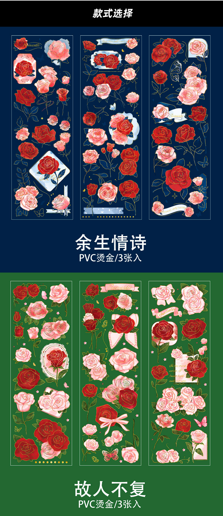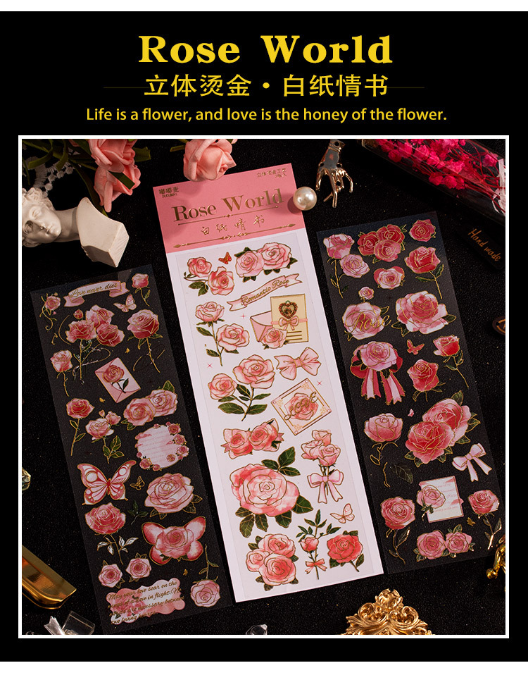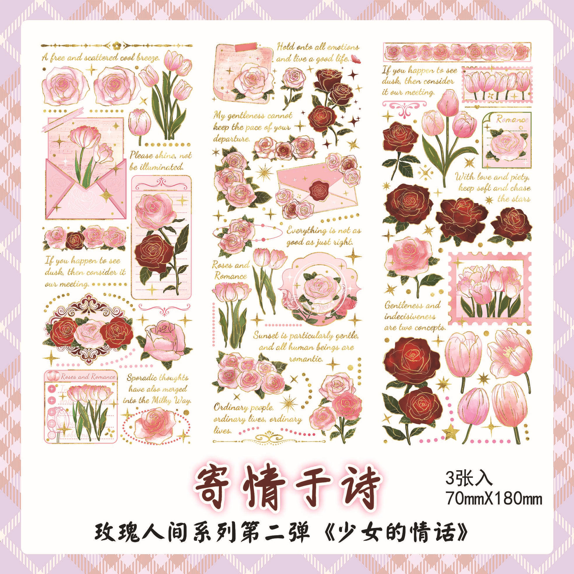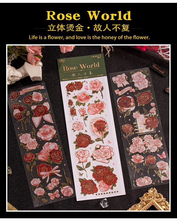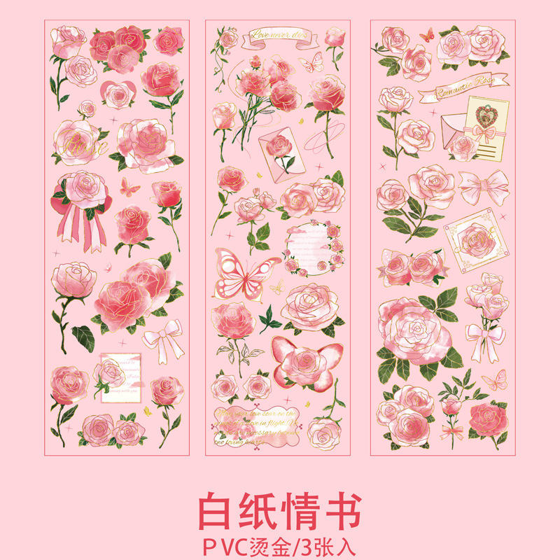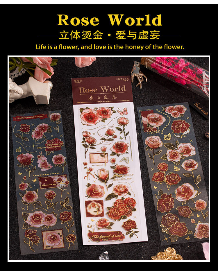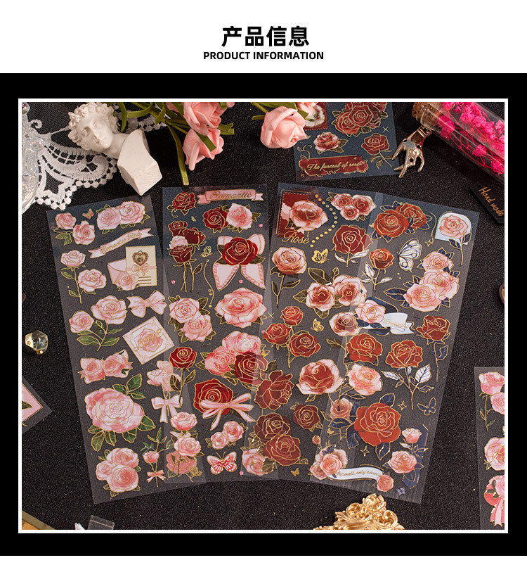 레트로 장미 인간 PVC 스테레오 브론징 스티커 로맨틱 꽃 손 계정 DIY 재료 콜라주 장식 작은 스티커스토어 가기